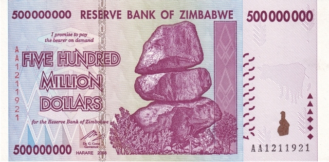 ZIMBABWE 500 000 000 500000000 Dollars 2008 P-82 Seria AA UNC