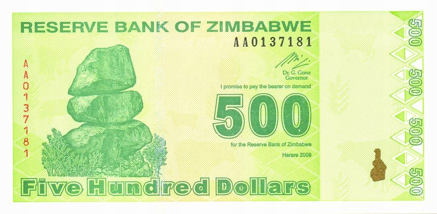 ZIMBABWE 500 Dollars 2009 P-98 Seria AA UNC
