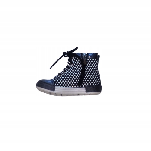 - Цвет: черный в белых точках в горошек, кончики и верхний флот, мерцающий с разными цветами, белая подошва с каблуком и пальцами серого. овчина, изоляция