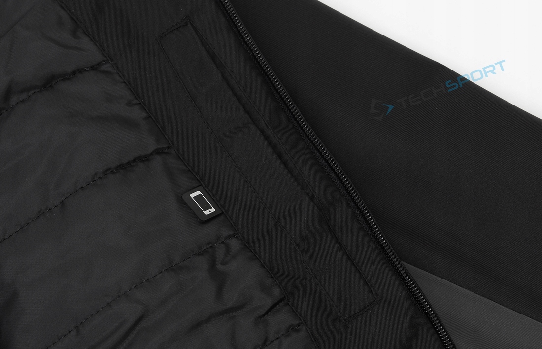 У куртки есть лыжный карман на рукаве с замком с складками. Манжеты регулируются на липучке: