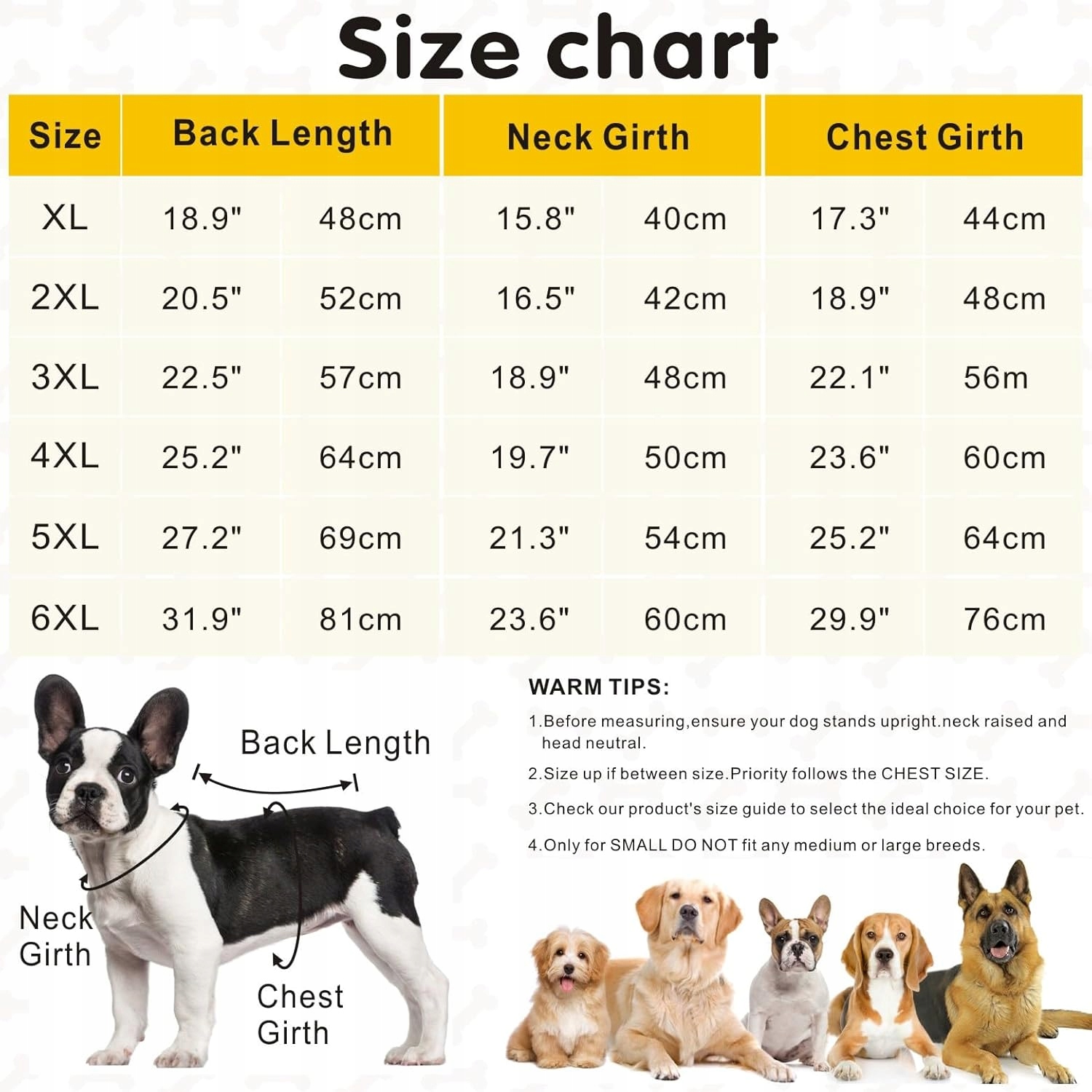 ⚠ Примечание! , прежде чем вы решите купить, измерьте свою собаку в соответствии с таблицей размеров . Не предлагайте определенный размер, потому что разные производители используют разные стандарты, а собаки могут иметь разные пропорции тела.
