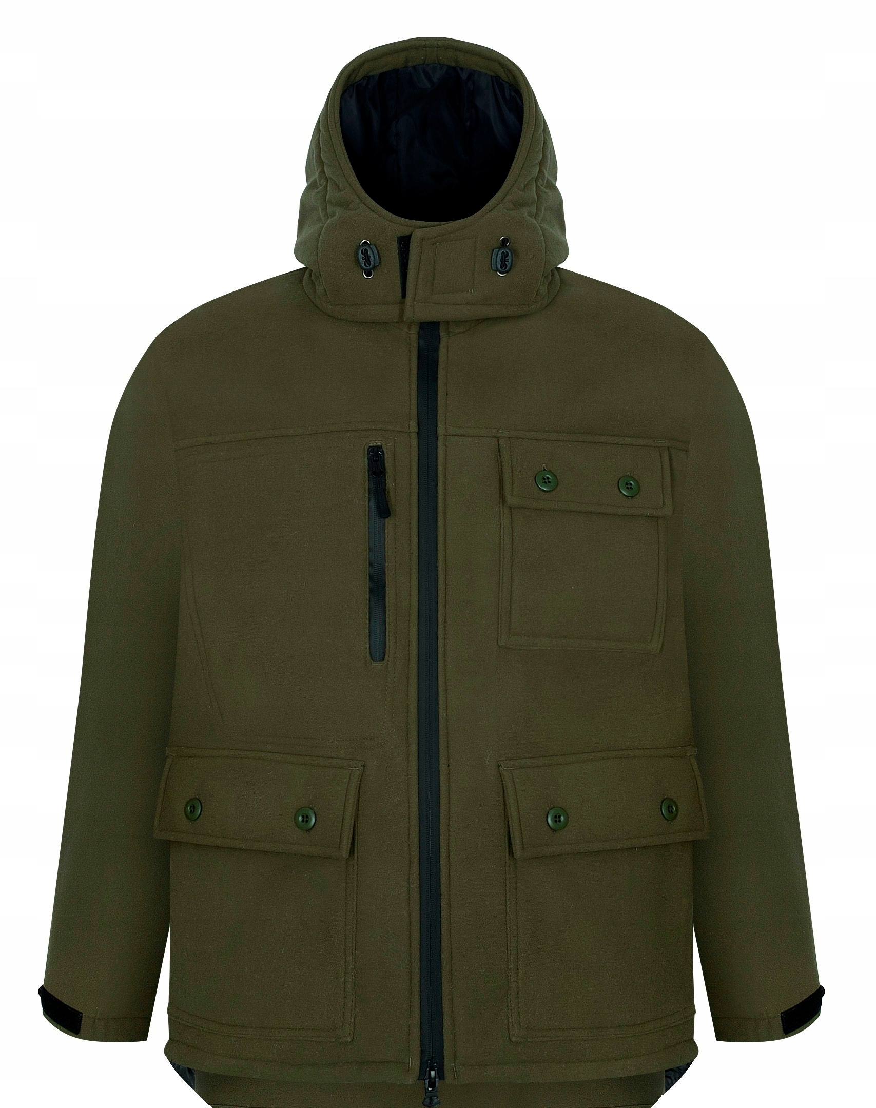 Два передних кармана с клапанами и пуговицами - дополнительно два боковых для рук, застегиваются на водонепроницаемые молнии.