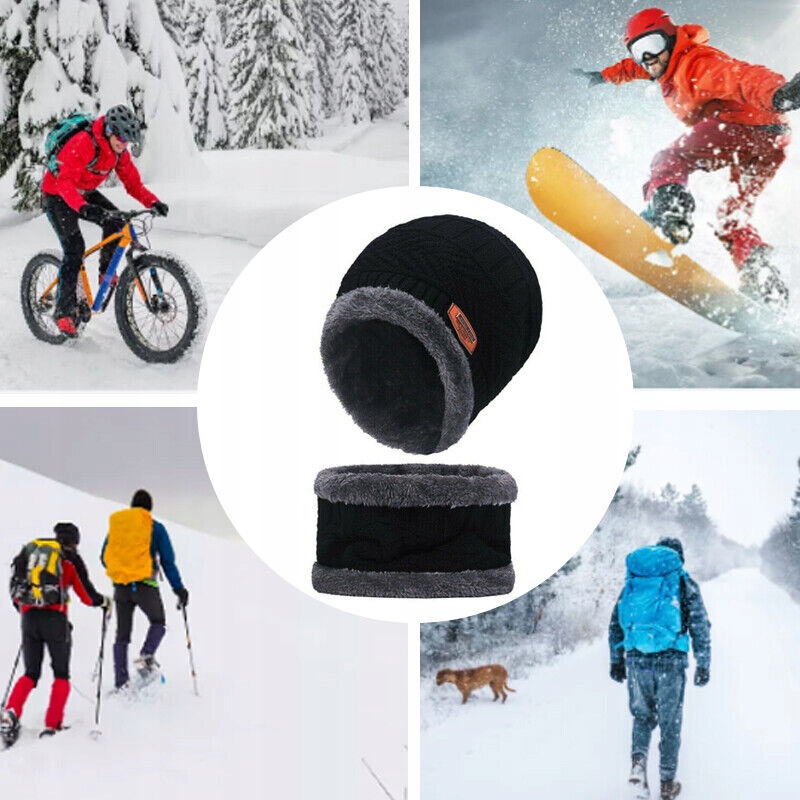 ЗИМОВА ШАПКА ШАРФ ДЛЯ ЖІНОК І ЧОЛОВІКІВ ФЛІСОВА ПІДКЛАДКА ТЕПЛИЙ ПОДАРУНОК