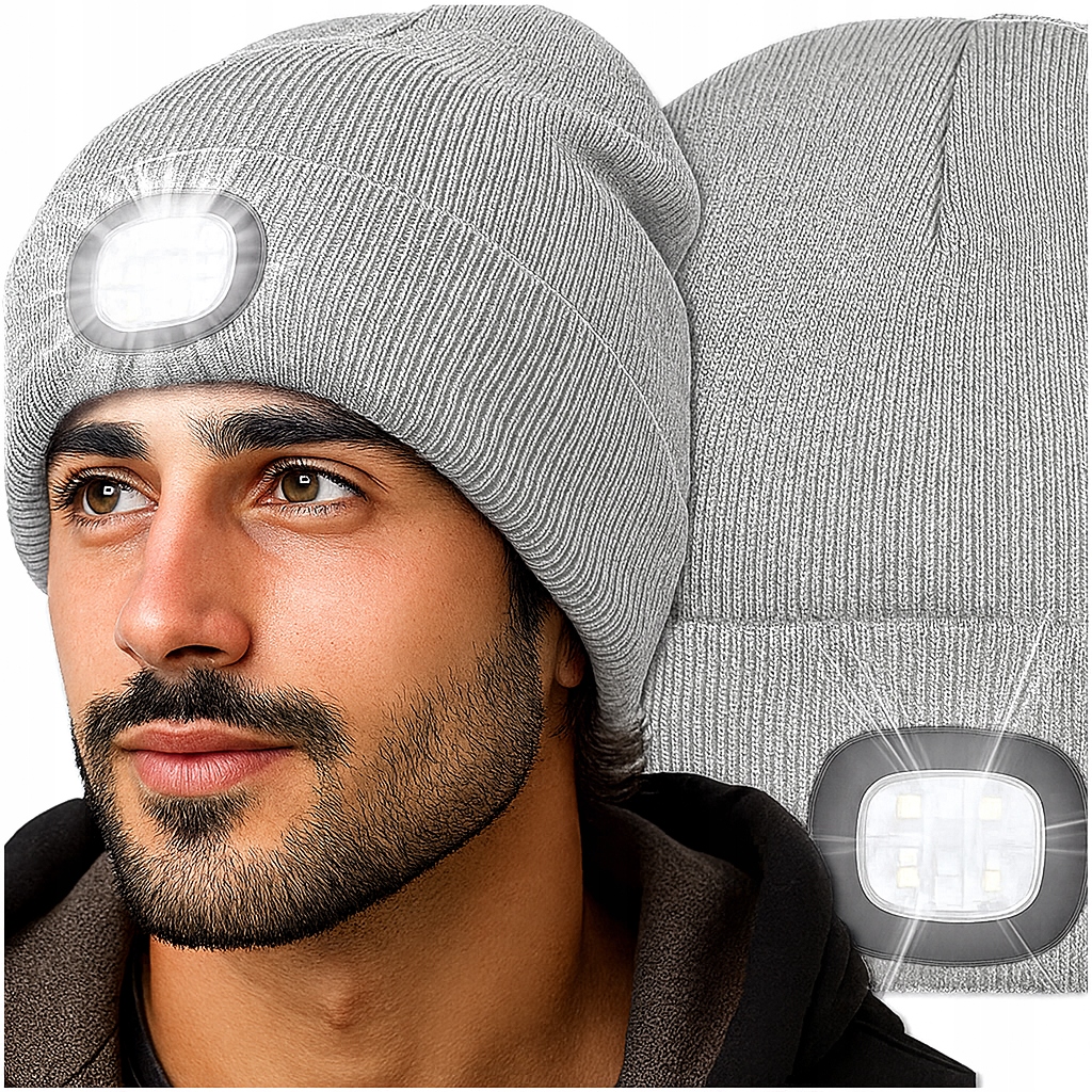 ЗИМОВА ШАПКА З СВІТЛОДІОДНИМ ЛІХТАРИКОМ ЧОЛОВІЧА ТЕПЛА СПОРТИВНА ДВОШАРОВА USB