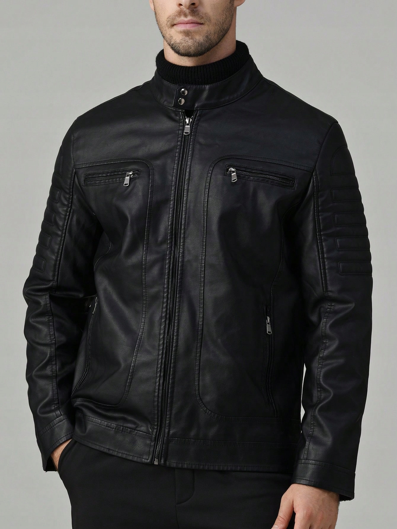 Зимняя кожаная куртка мужская осенняя байкер -байкер байкер