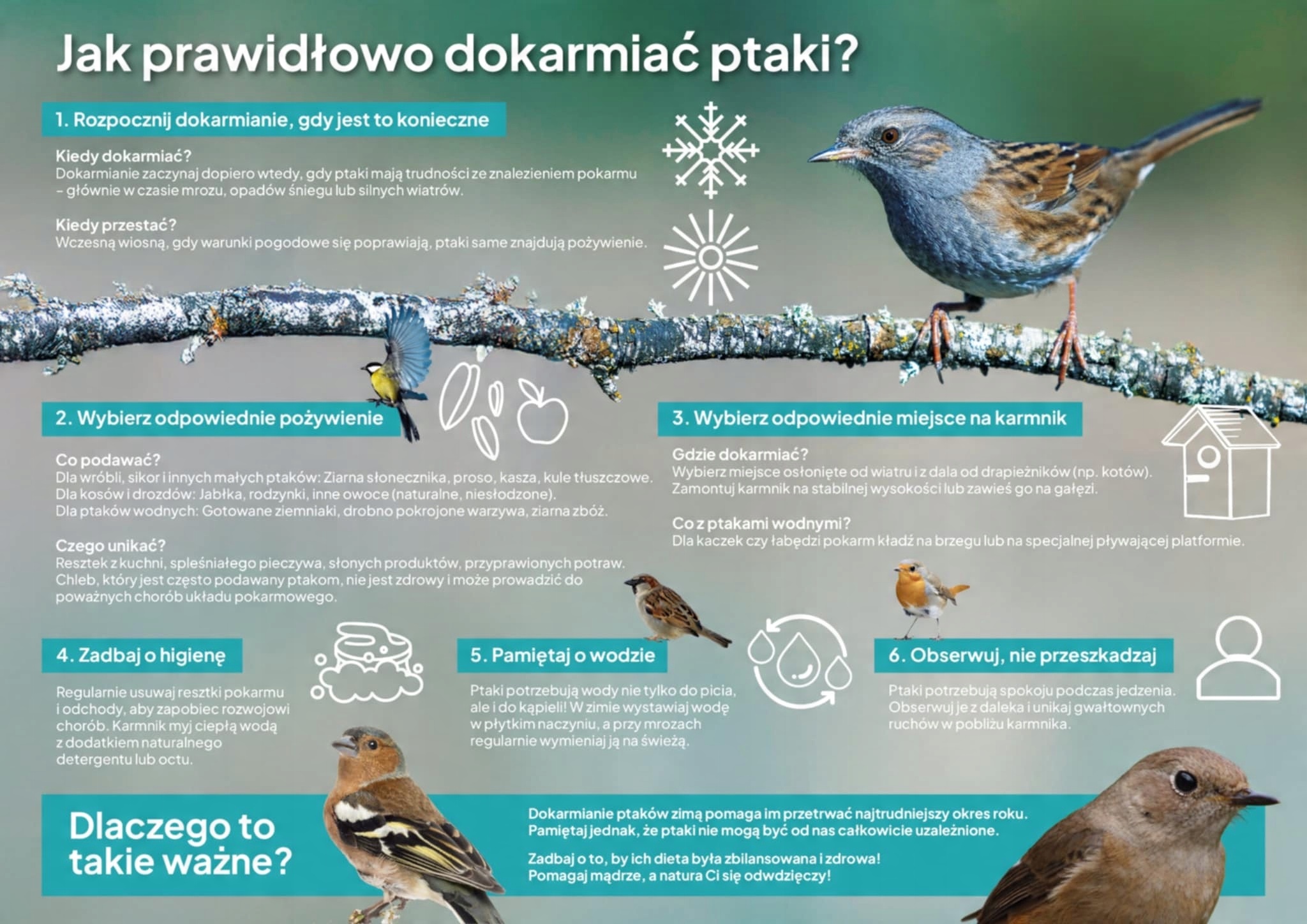 Смесь POLSKI KARMNIK — это тщательно отобранные обеспыленные зерна, которые являются богатством для птиц и других видов животных. Углеводы, жиры, белки и витамины — все это немногое пернатым существам особенно нужна вода зимой. Если мы предоставим им все это, то и они предоставят нам то, что мы от них ожидаем.