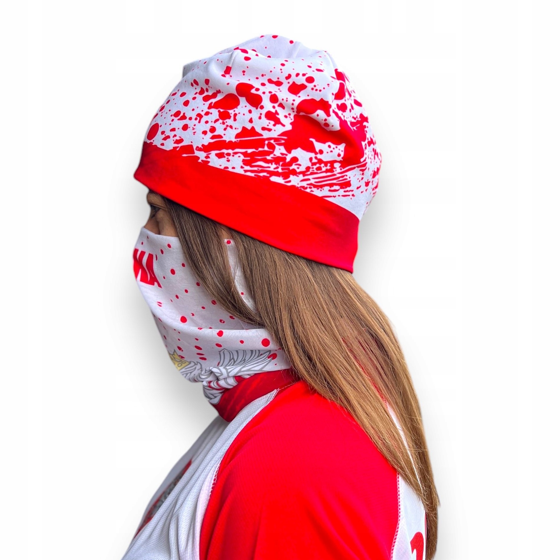 Термоактивная зимняя шапка для польского болельщика бело-красный орел + утеплитель для шеи
