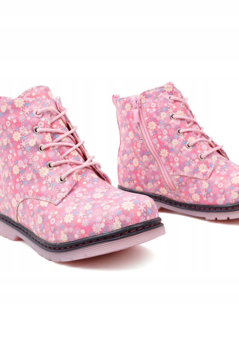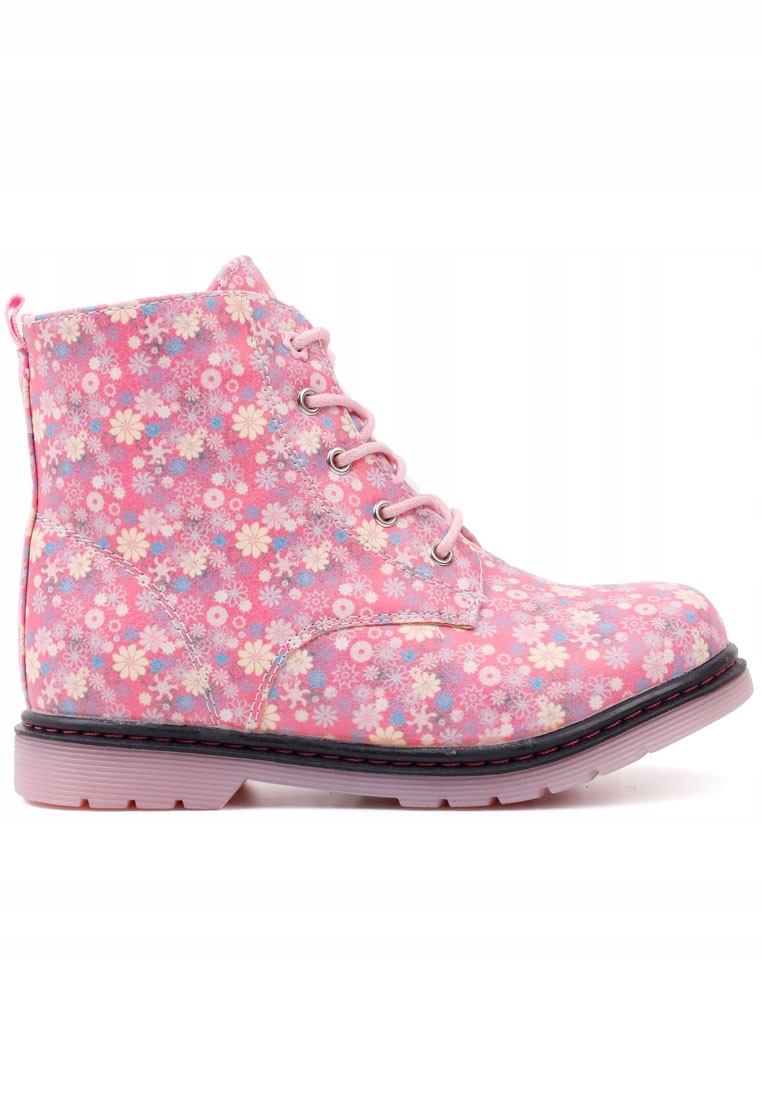 Сапоги-траппер — сапоги для девочек на трапперной подошве и небольшом каблуке. Изготовлен из экологической кожи. Верх закрывает щиколотку, украшен красивыми цветами по всей поверхности. Спереди завязывается шнурками, дополнительно застегивается на молнию с внутренней стороны. Декоративная тесьма с пришитой сзади петелькой. Слегка утеплены. Придадут шик и оживят любой образ в этом сезоне!