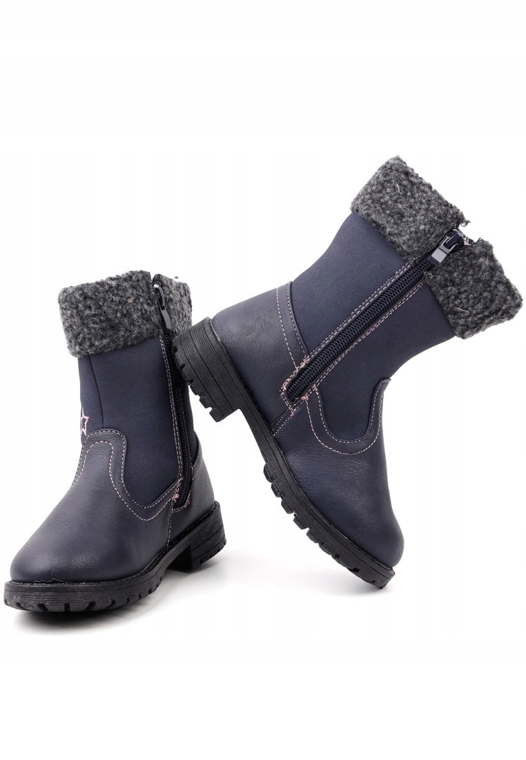 Ботинки для девочек на плоской подошве и квадратном каблуке. Верхняя часть достигает середины икры. Сапожки украшены искусственным мехом по краю и очаровательными розовыми звездочками сбоку. Застегивается на молнию. Изготовлен из экокожи в сочетании с экозамшей. Стильные ботинки для каждой девушки.