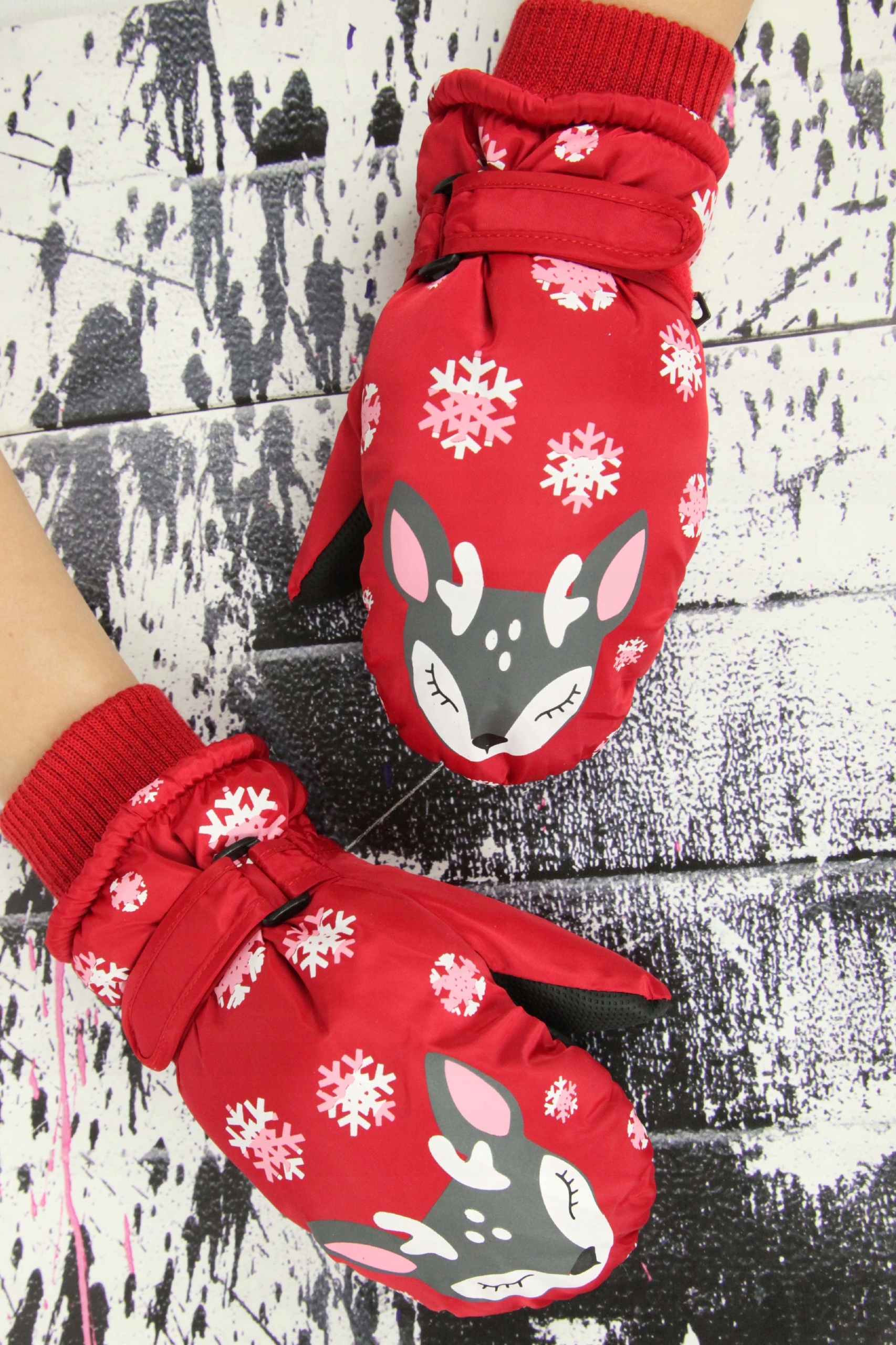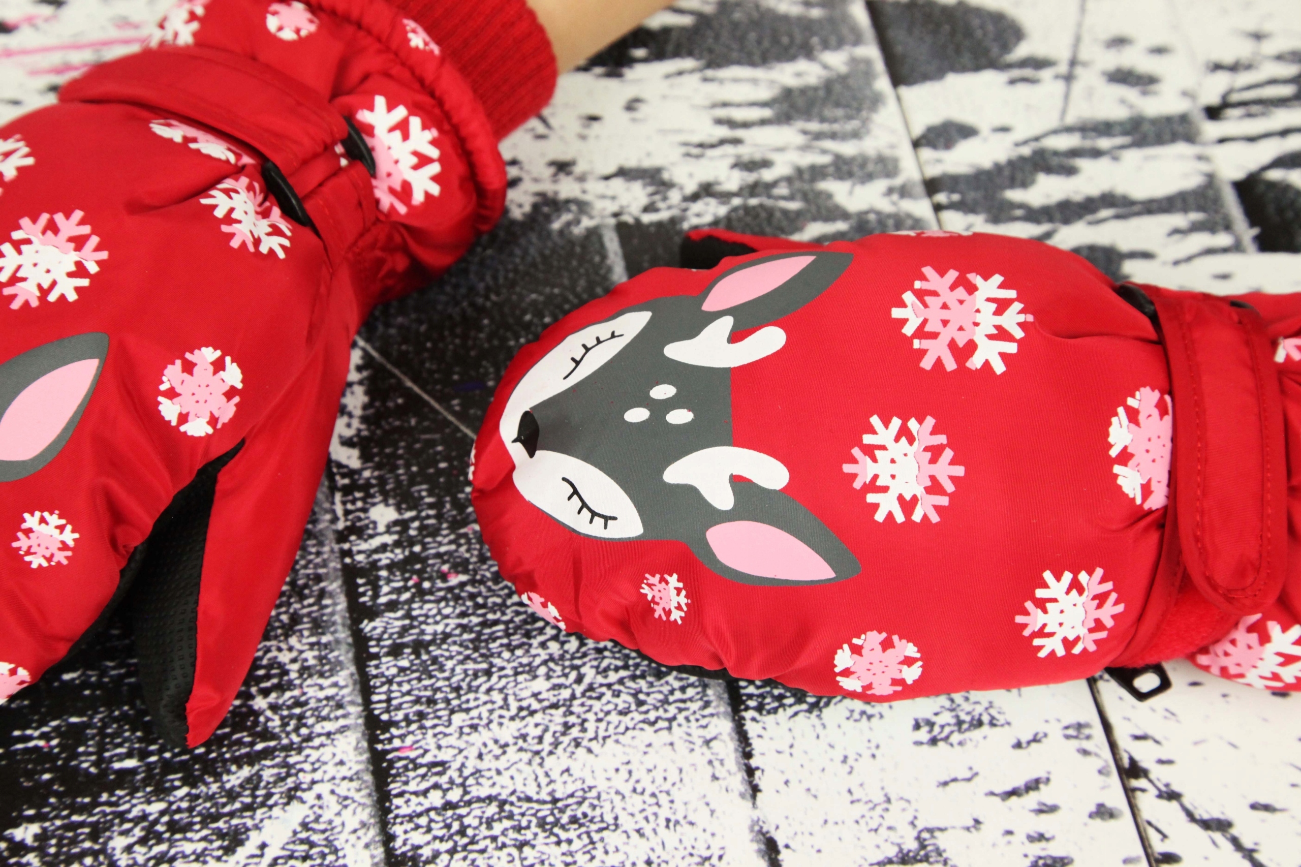 Красивые, теплые, одноразовые детские перчатки с очаровательным мотивом оленей. Изнутри, наполненного мягким плюшевым мишкой. У них есть защитник и уточняющий застежки. Перчатки могут быть прикреплены вместе.