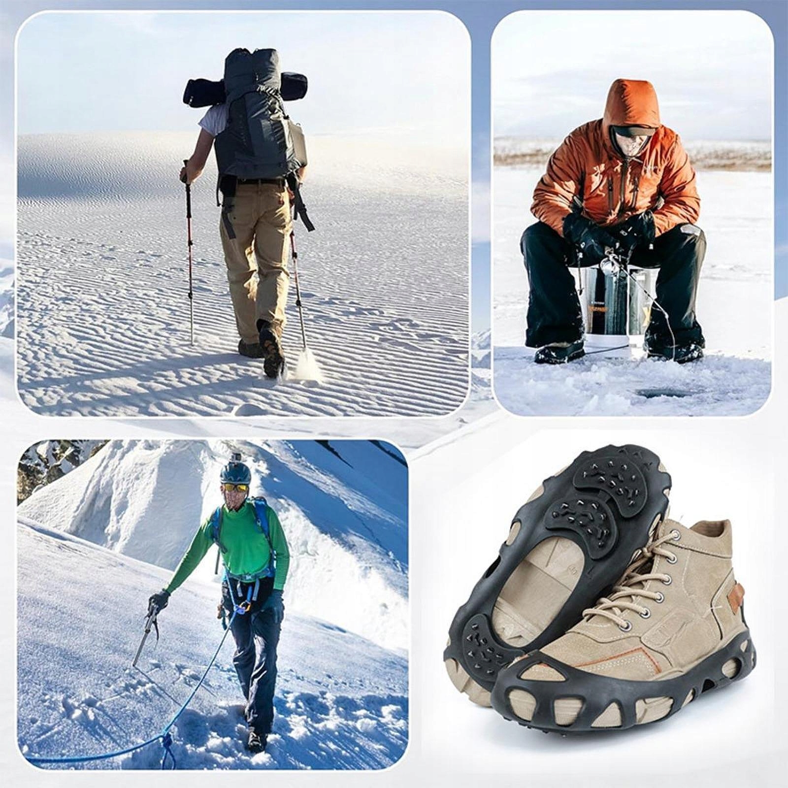 [Особенность продукта]: захваты для льда с 30 шипами, для лазания по заснеженной местности, более безопасные на снегу, льду или скользкой поверхности, обеспечивают отличное сцепление на льду.