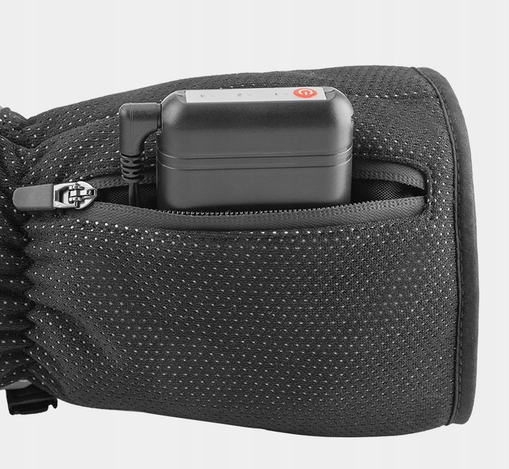 Аккумуляторы помещаются в специальный карман на запястье, закрывающийся на молнию.
