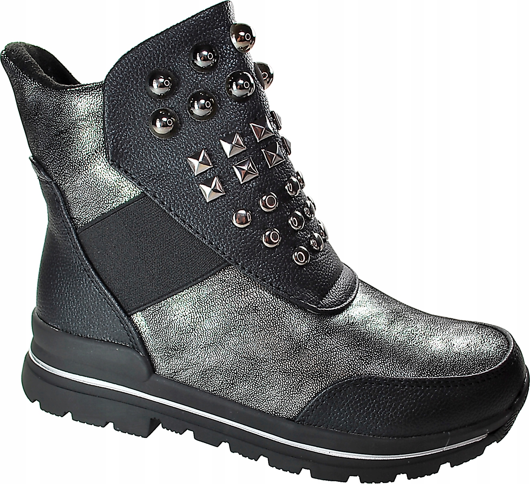 ЧЕРНЫЕ СЕРЕБРЯНЫЕ ЗИМНИЕ БОТИНКИ, молния, размер 35