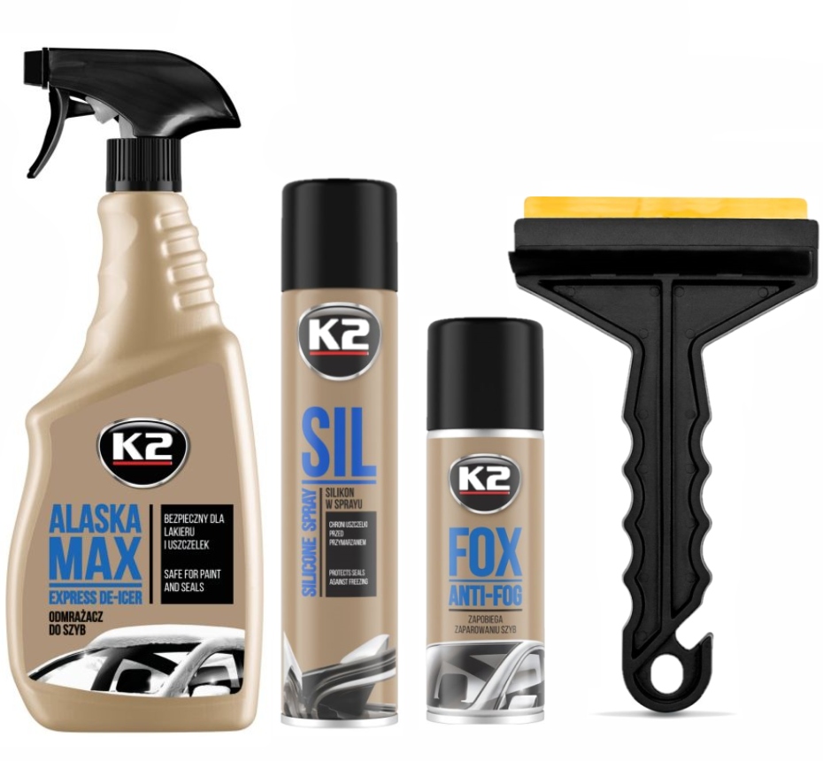 K2 ЗИМНИЙ КОМПЛЕКТ ДЛЯ АВТОМОБИЛЯ, ОБОГРЕВАТЕЛЬ СТЕКЛОВ, УПЛОТНИТЕЛИ ЗАМКОВ СИЛИКОНОВЫЙ АНТИПЕННЫЙ + СКРЕБОК