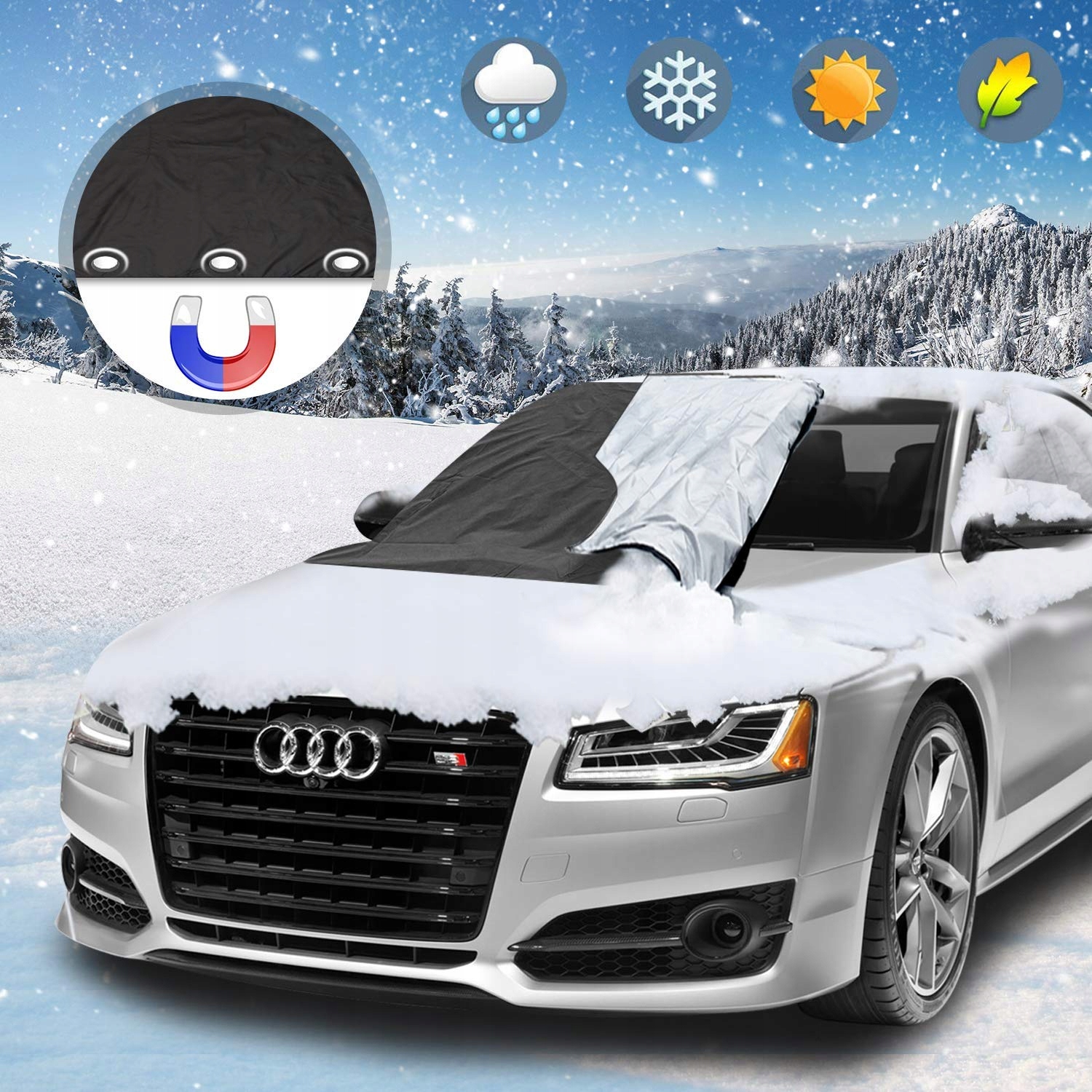Материалы высшего качества: этот снежный чехол, изготовленный из экологически чистой ткани 210T с антивозрастными и устойчивыми к ультрафиолетовому излучению добавками, защищает краску вашего автомобиля от ультрафиолетовых лучей и износа. Усиленная конструкция обеспечивает долговечность. Он обеспечивает исключительную защиту от воды и ветра, а также эффективную теплоизоляцию от холода.