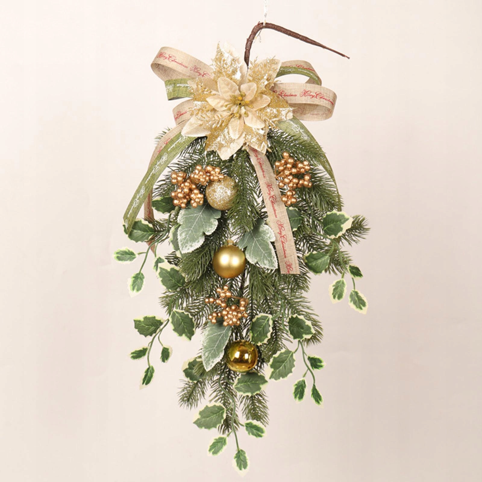 Рождественские подарки в форме слезинок: рождественский венок в форме слезы, богатые рождественские элементы, украшенные безделушками, бантом, цветком, выглядят настоящими.