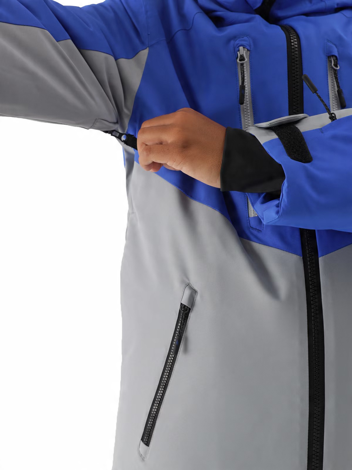 - Регулируемые на липучке манжеты, оснащенные внутренними эластичными манжетами для пальцев.