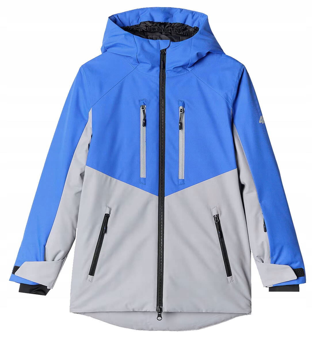 Лыжный костюм состоит из двух изделий 4F. Сине-серая куртка и черные лыжные штаны на подтяжках.
