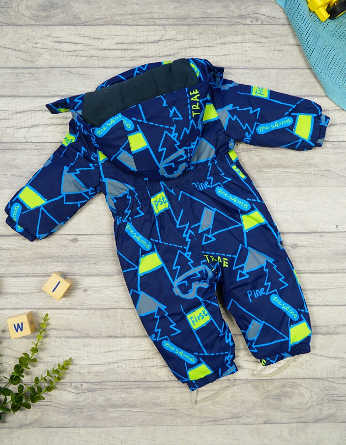 Зимний комбинезон для ребенка с лыжным типом с съемным капюшоном.