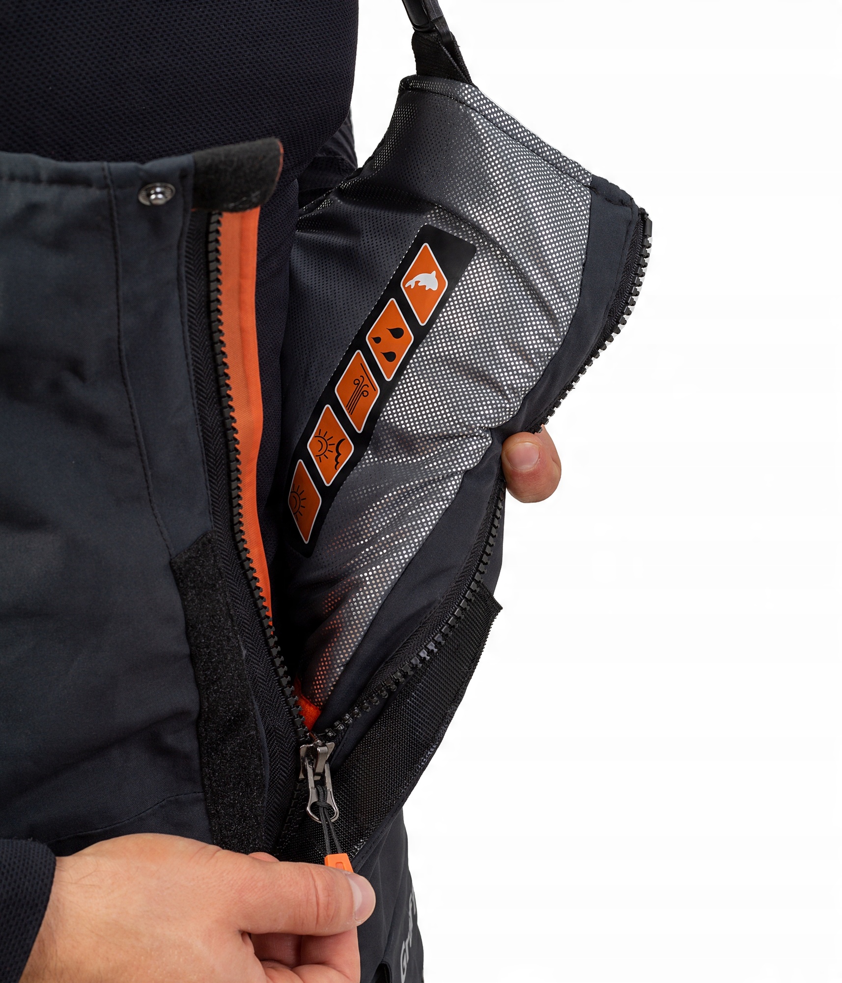 Разработано с учетом экстремальных погодных условий. Благодаря мембране BRATEX® с повышенными параметрами паропроницаемости и гидроизоляции (8000 мм H2O/8000 г/м2/24 ч) комплект обеспечивает тепловой комфорт, удаляя лишнюю влагу из внутренней части одежды, и одновременно защищает от дождь, снег и ветер.