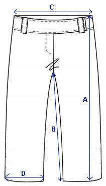 - Максимальная общая длина (застегнутая на последнюю пуговицу при подвернутой ноге): 74 см.
