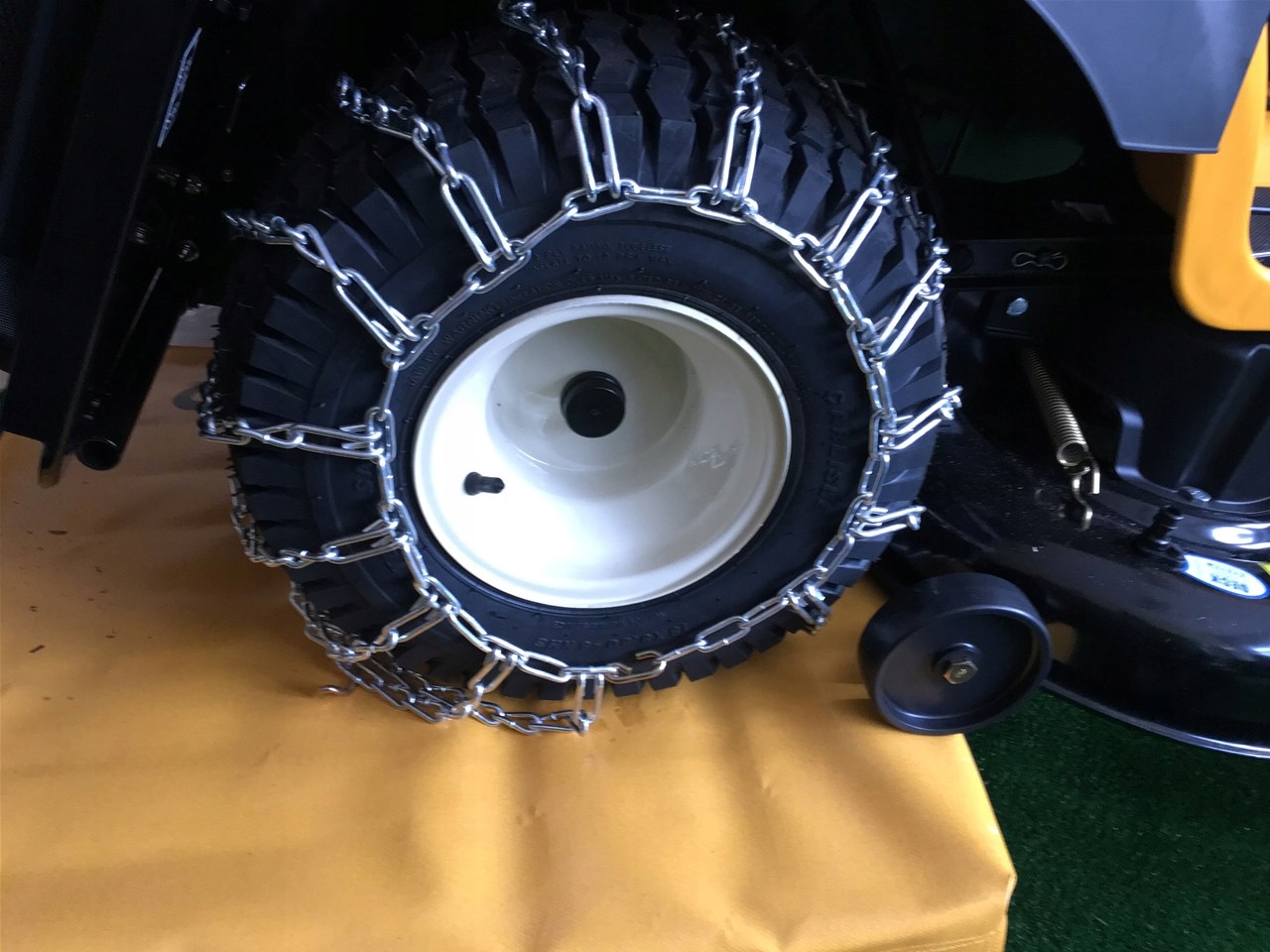 Цепи задних колес садовых тракторов группы МТД. Продукт, необходимый зимой при уборке снега трактором. Доступные размеры: 20" х 8", 18 х 6,5, 18 х 9,5 и другие. После покупки необходимо выбрать размер