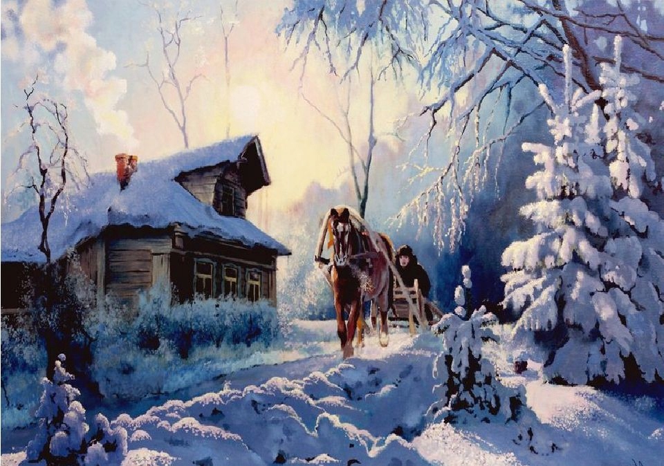 № 7 зима в сельской местности - лошадь - санни