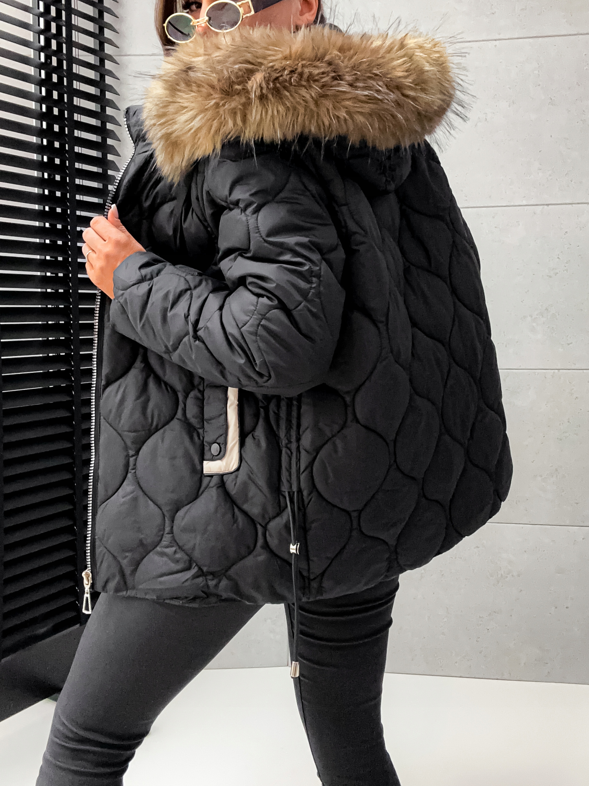 Зимний стеганая модная куртка с мехом - s