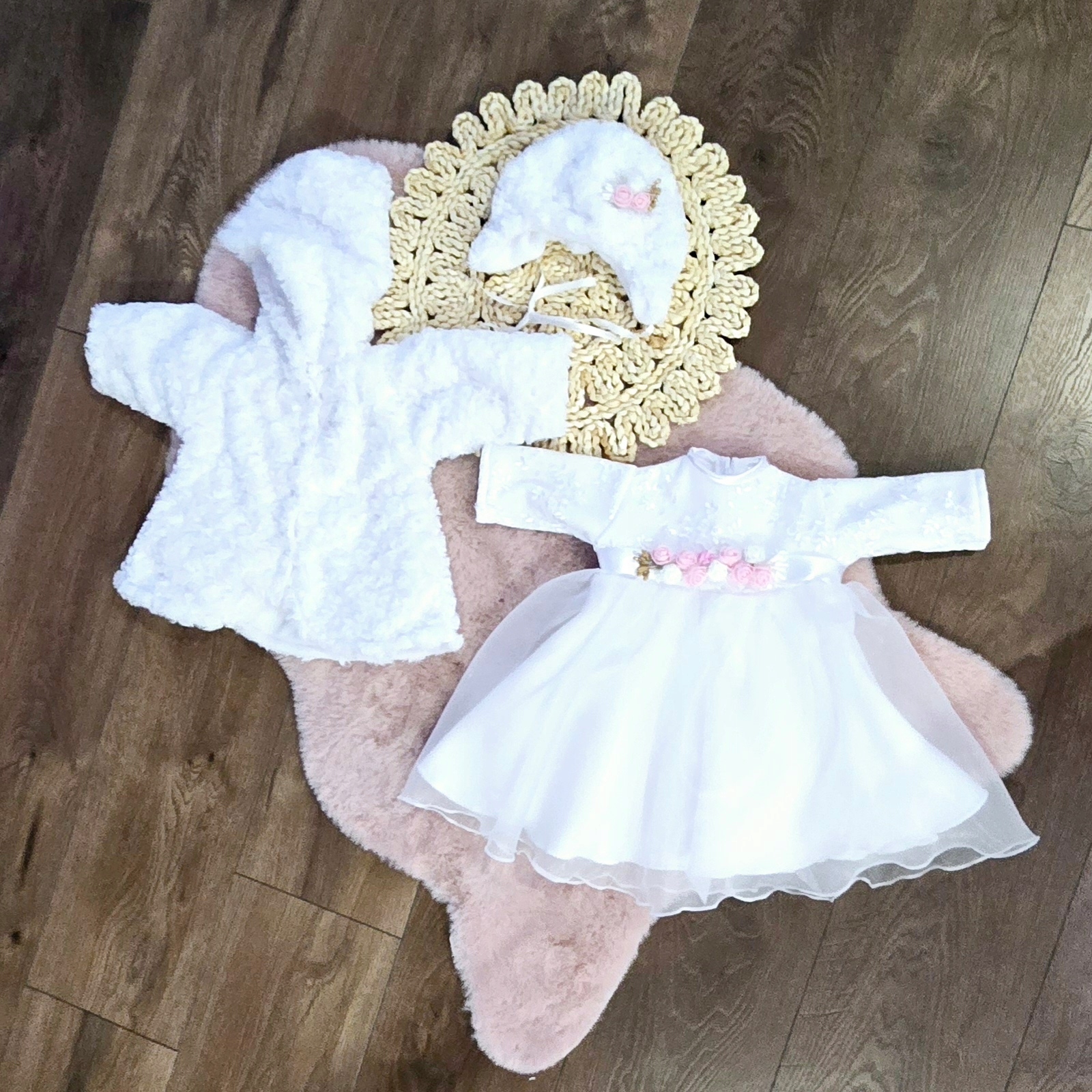 КРАСИВЫЙ ТЁПЛЫЙ НАБОР из флиса и меха ЭЛЕГАНТНЫЙ КРЕЩЕННЫЙ НАБОР