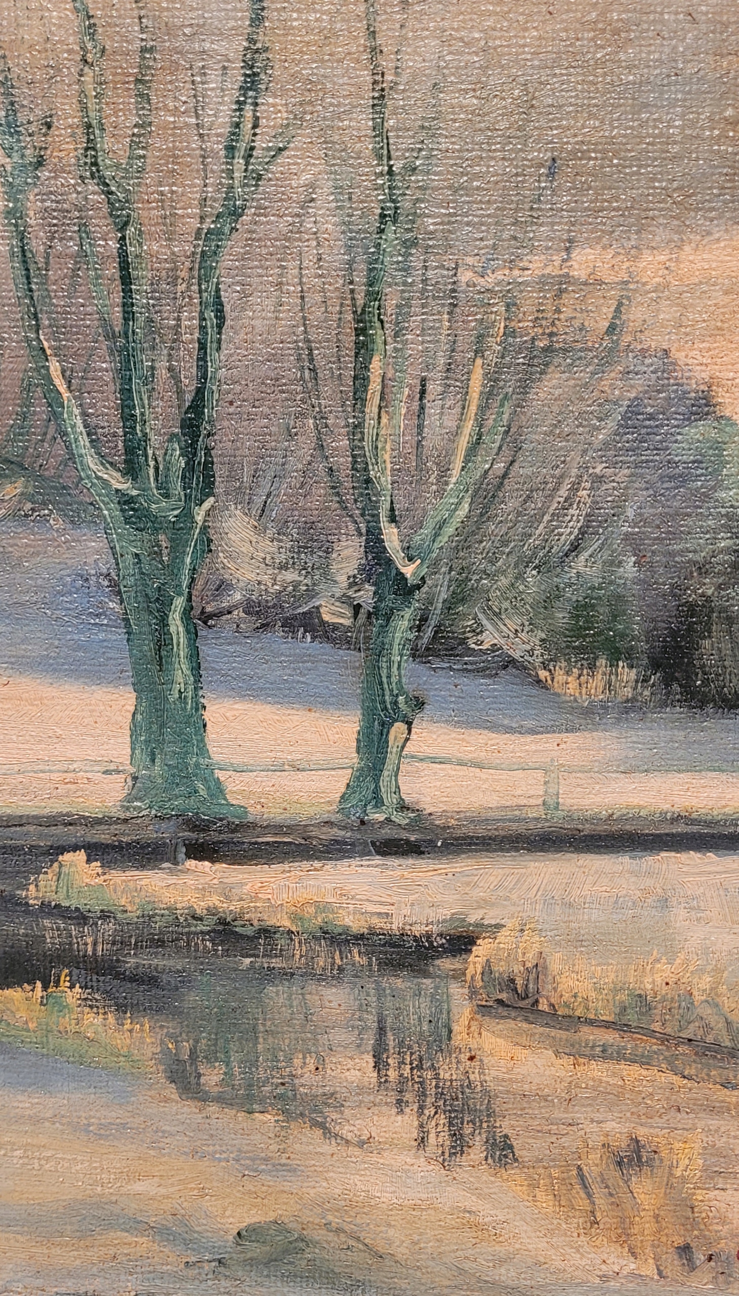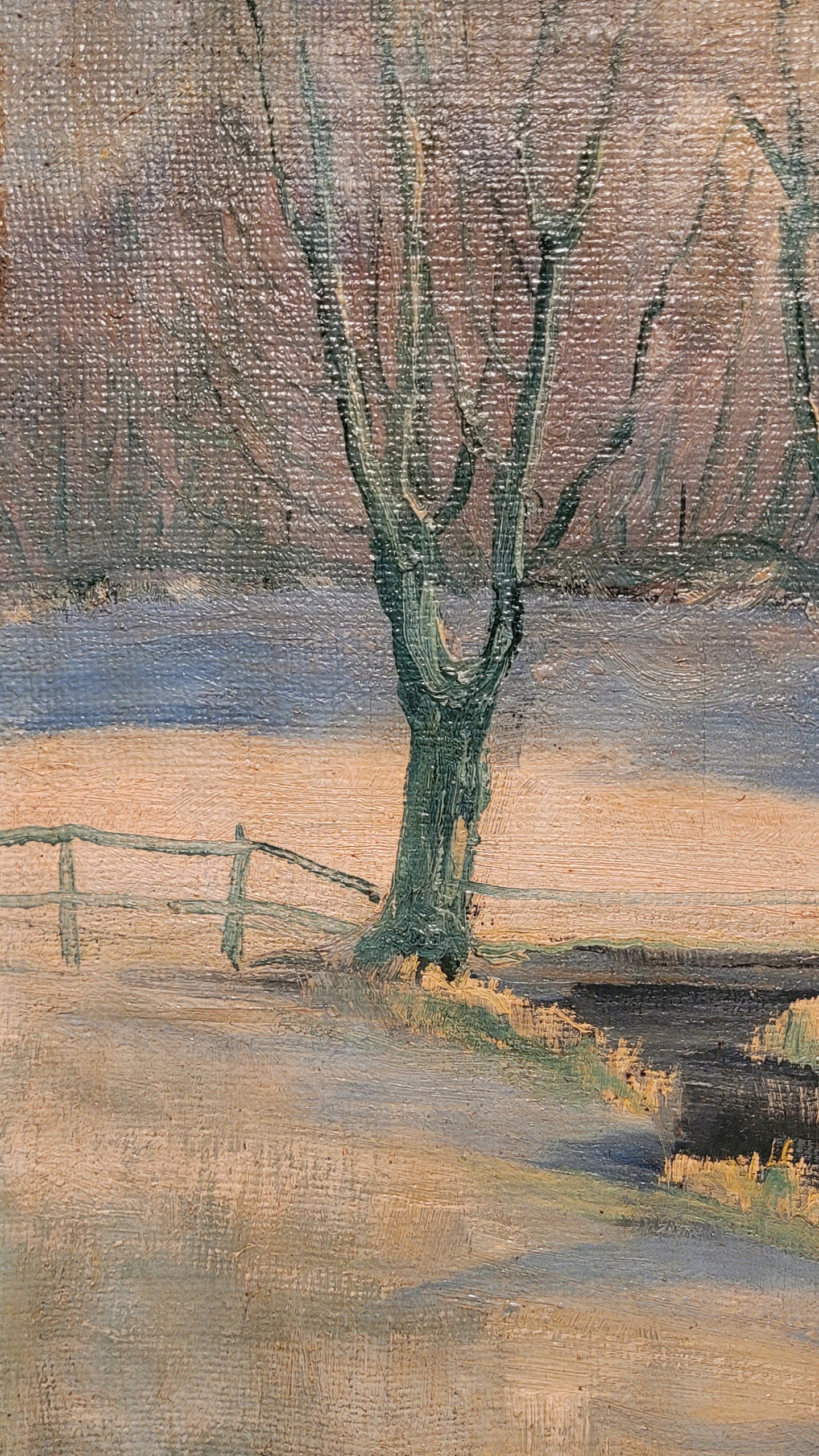 Предмет продажи — красивая старинная картина маслом "ЗИМНИЙ ПЕЙЗАЖ".