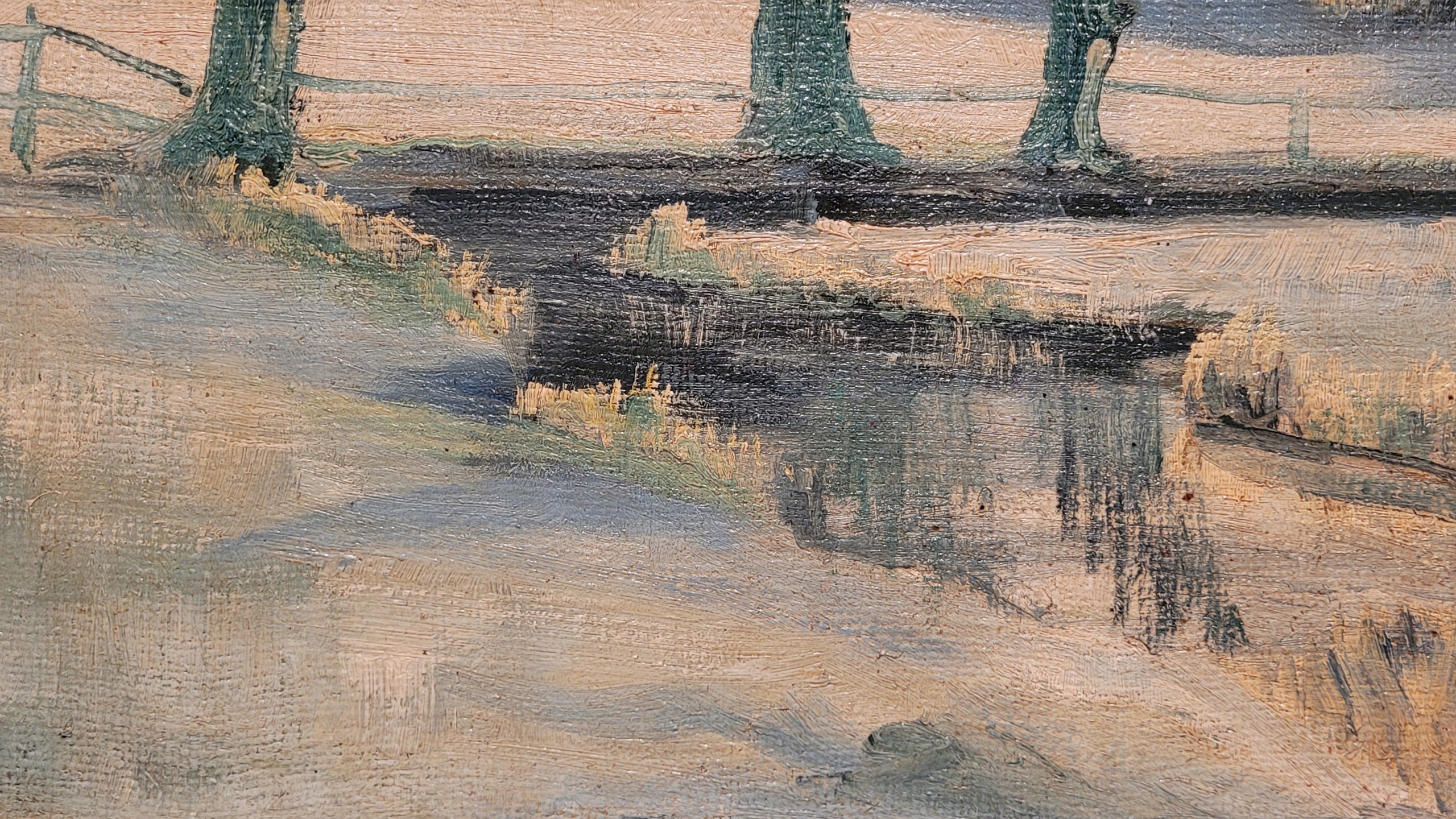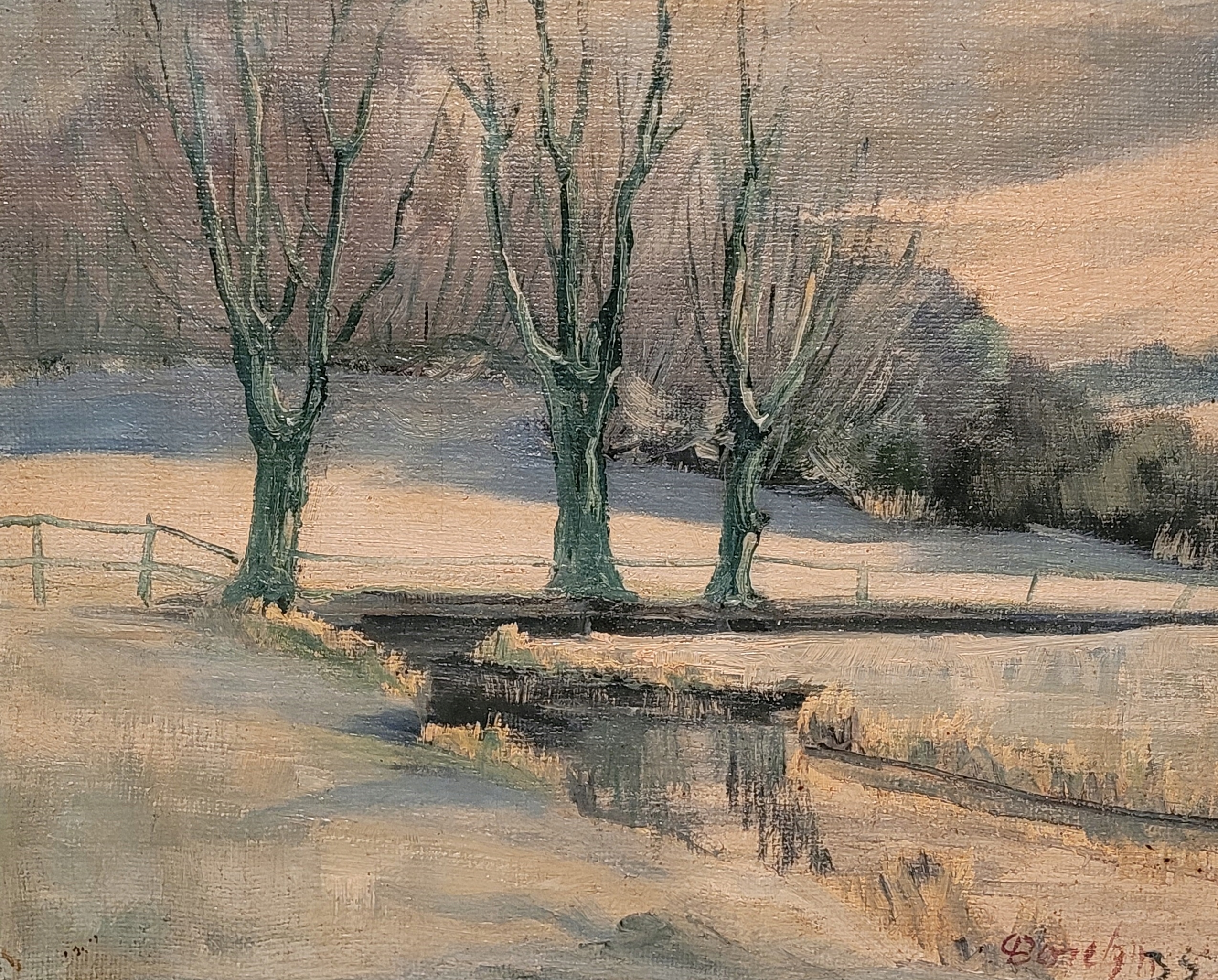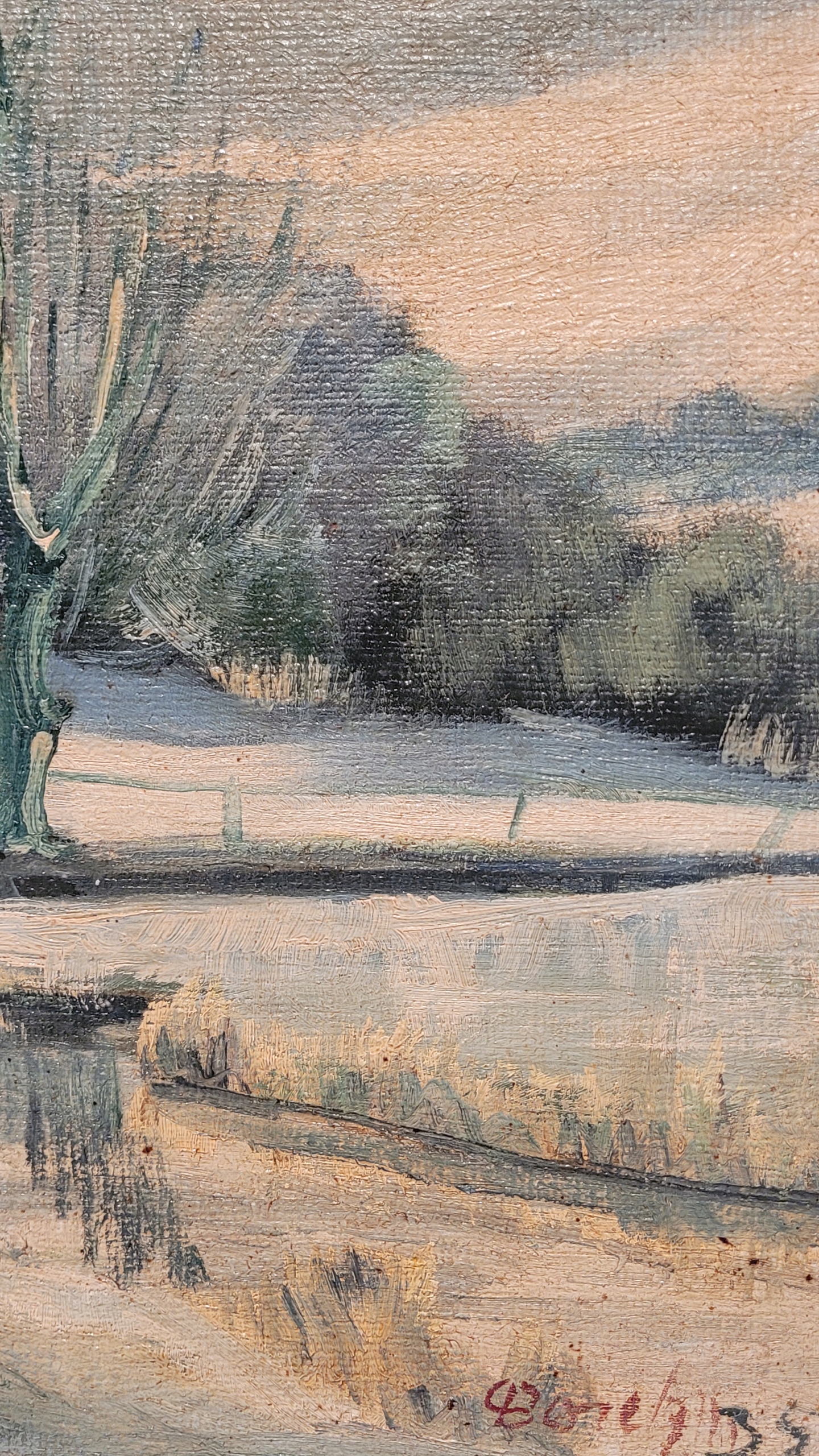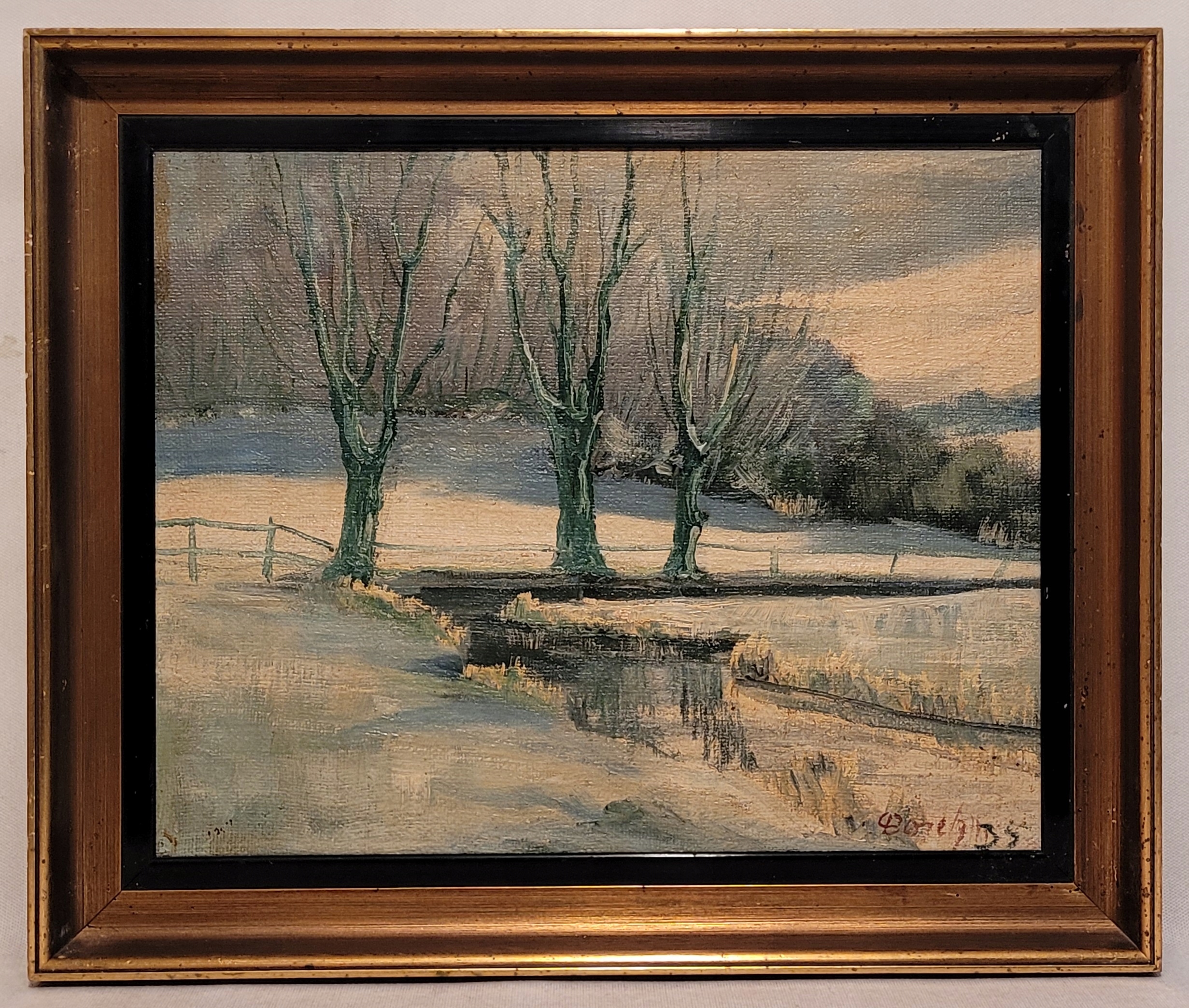 «ЗИМОВИЙ ПЕЙЗАЖ», підписана картина олією 1935 року.
