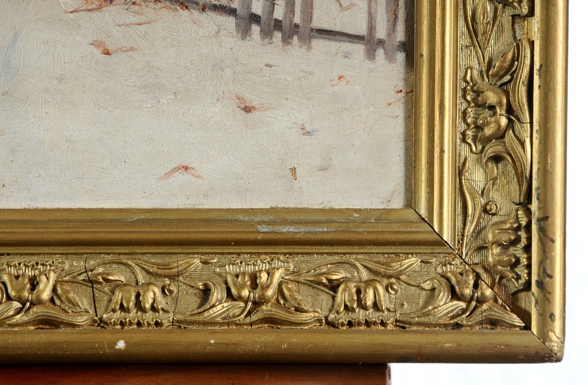"ЗИМНИЙ ПЕЙЗАЖ" КРАСИВАЯ СТАРАЯ КАРТИНА МАСЛОМ - НА РЕМОНТ!!!