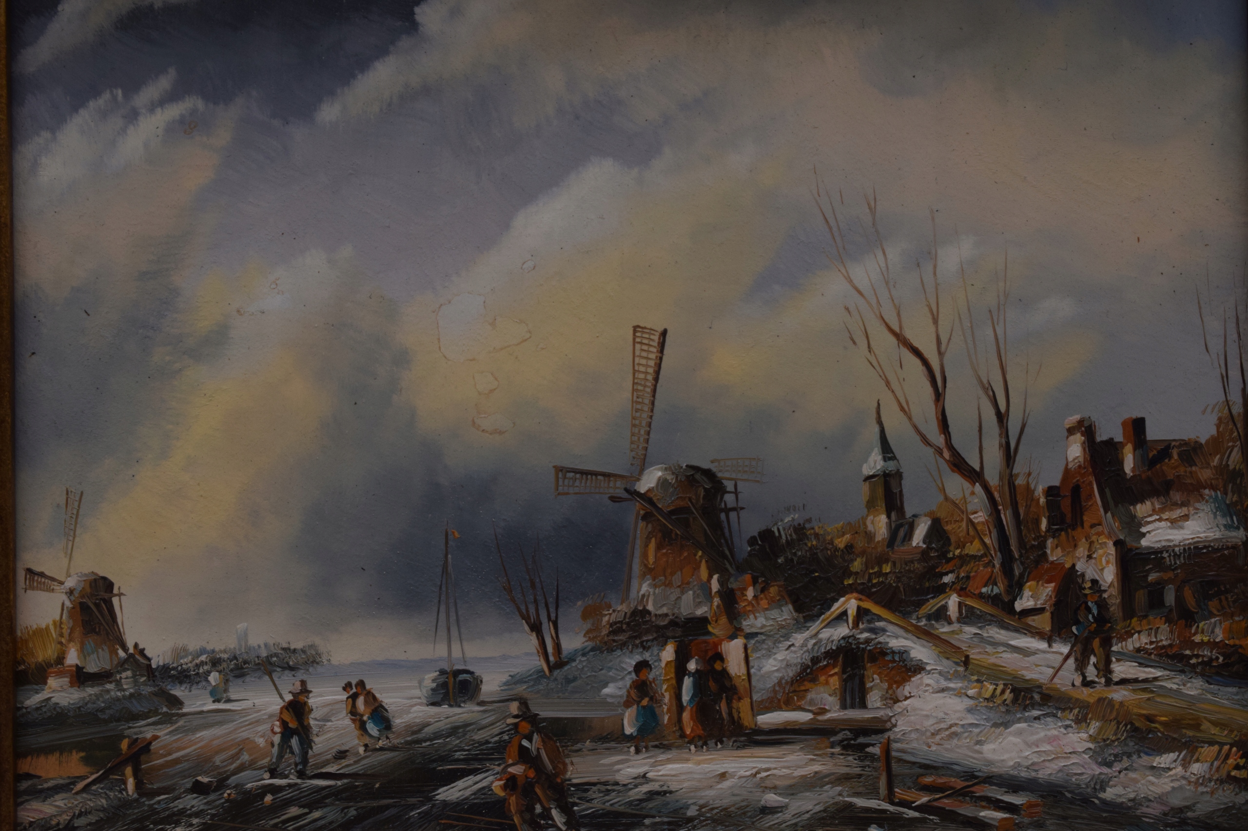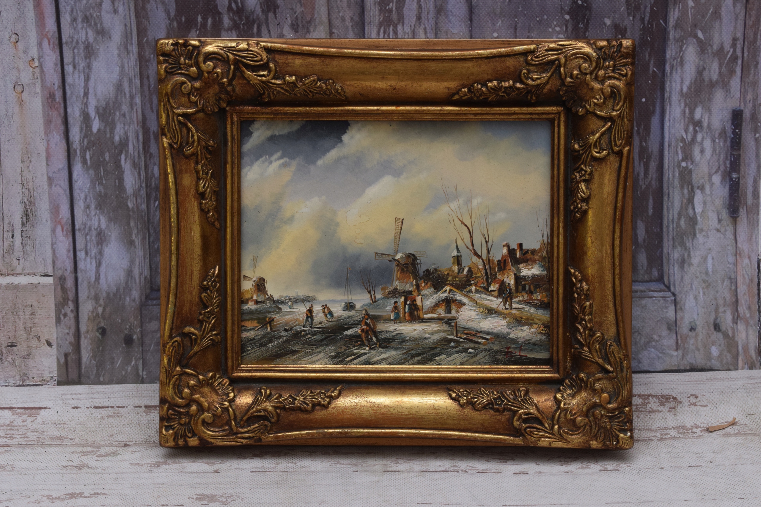 ЗИМОВИЙ ПЕЙЗАЖ ВІТРЯК - КАРТИНА НА БОРТУ, рамка