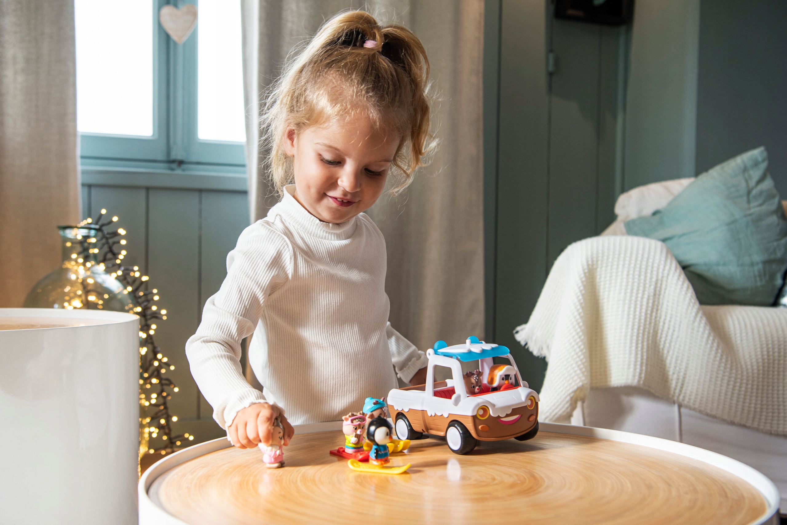 В комплект входят: заснеженный пикап, одно животное-пингвин , санки, лыжи, сноуборд. Игрушка для детей от 18 мес. Рекомендуем протирать поверхность игрушки мыльным раствором и влажной тряпкой.
