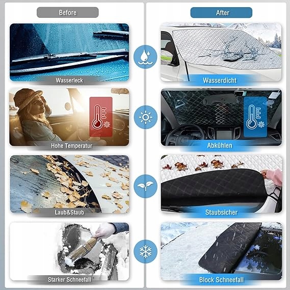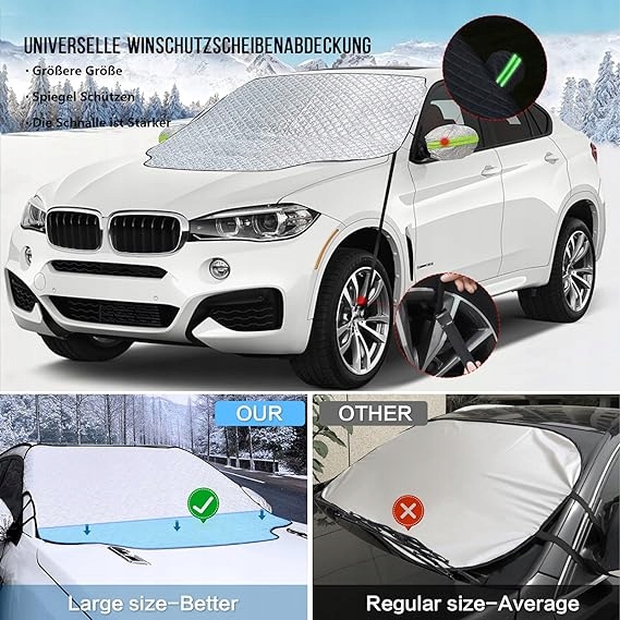Козырек лобового стекла имеет большой размер (193 х 126 см), который подходит для большинства легковых автомобилей и внедорожников. Он не только защитит лобовое стекло вашего автомобиля от мороза, снега и пыли, но и защитит автомобильную щетку.