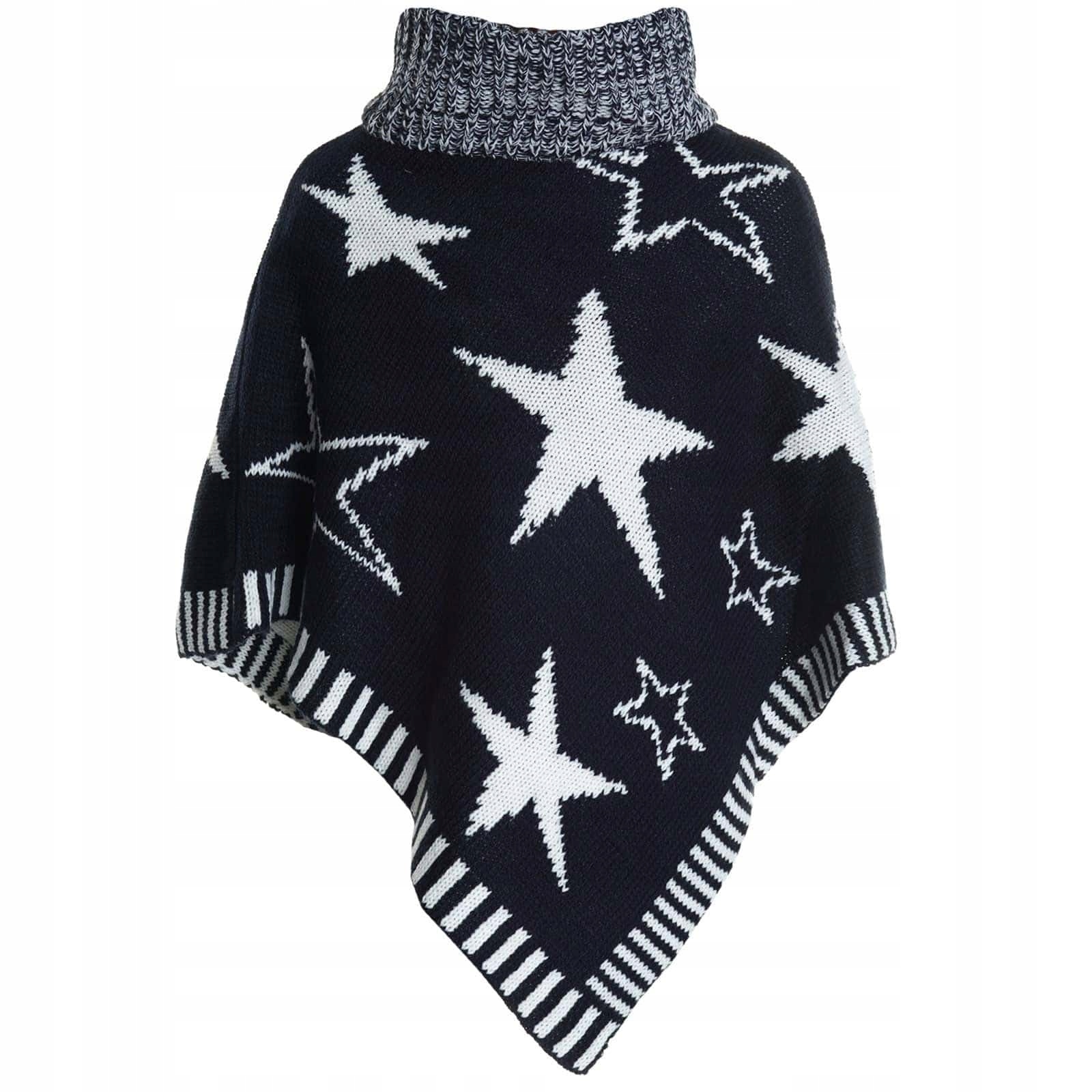 Свитер-пончо для девочки с водолазкой – звездная модель
