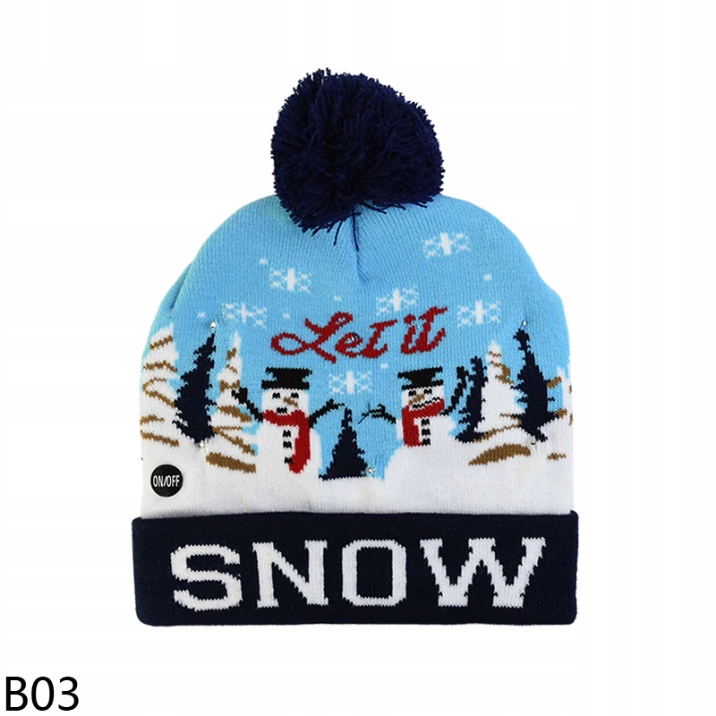 ZIMOWA CZAPKA LED ŚWIATEŁKA świeci pompon świeta