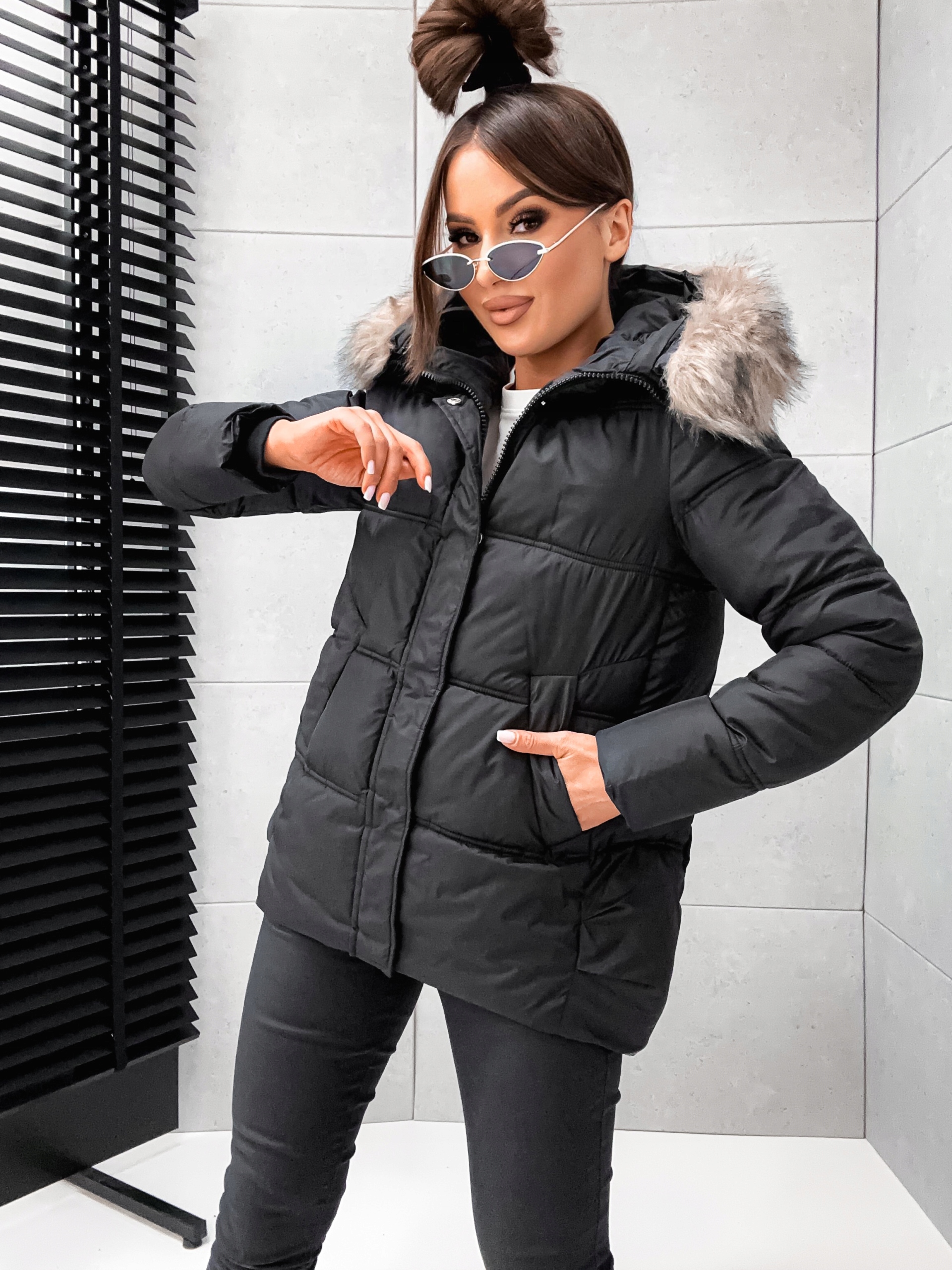 Zimowa_Pikowana_Modna Kurtka_Z Futerkiem