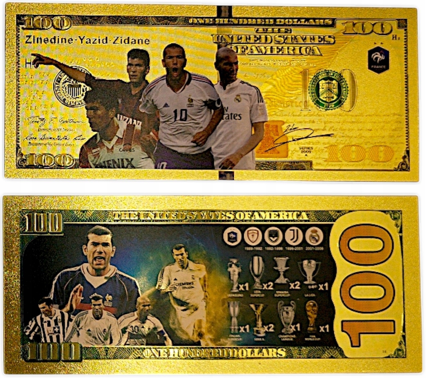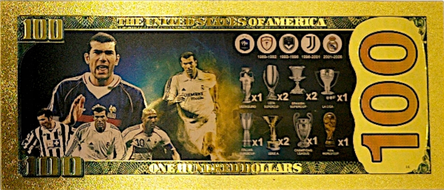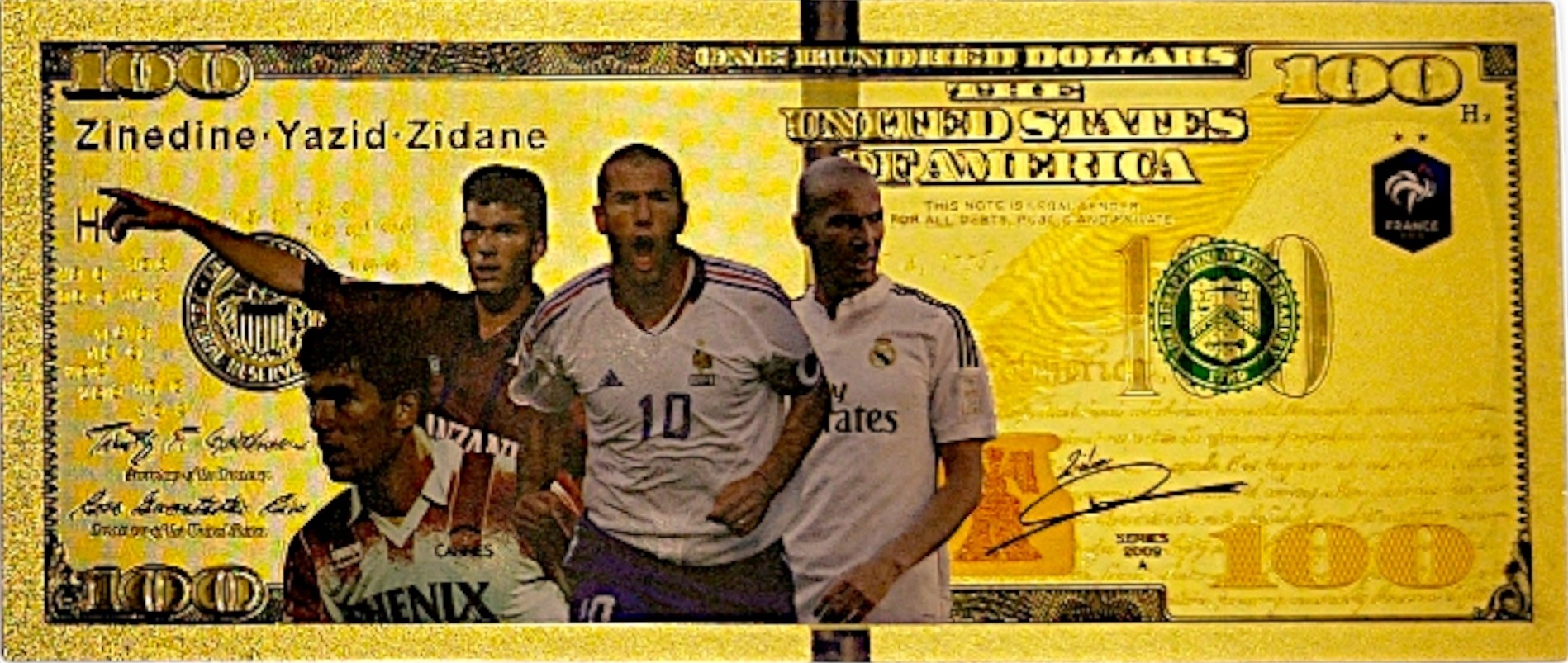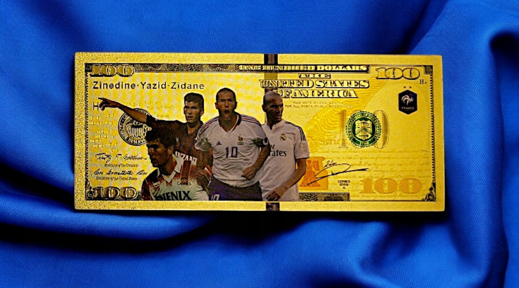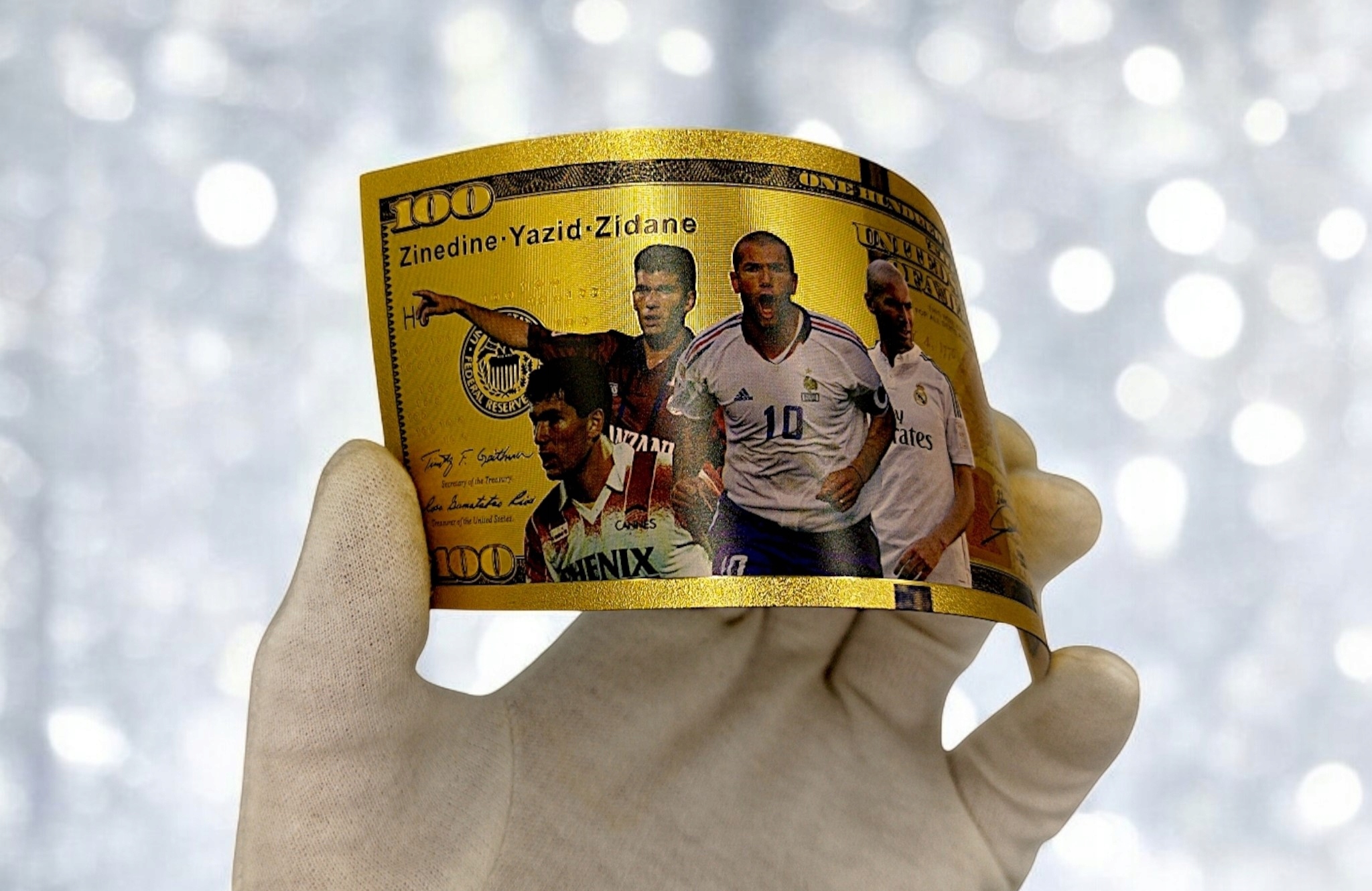 Zinedine Zidane Beautiful Gold Spected Collector's Banknote H1>