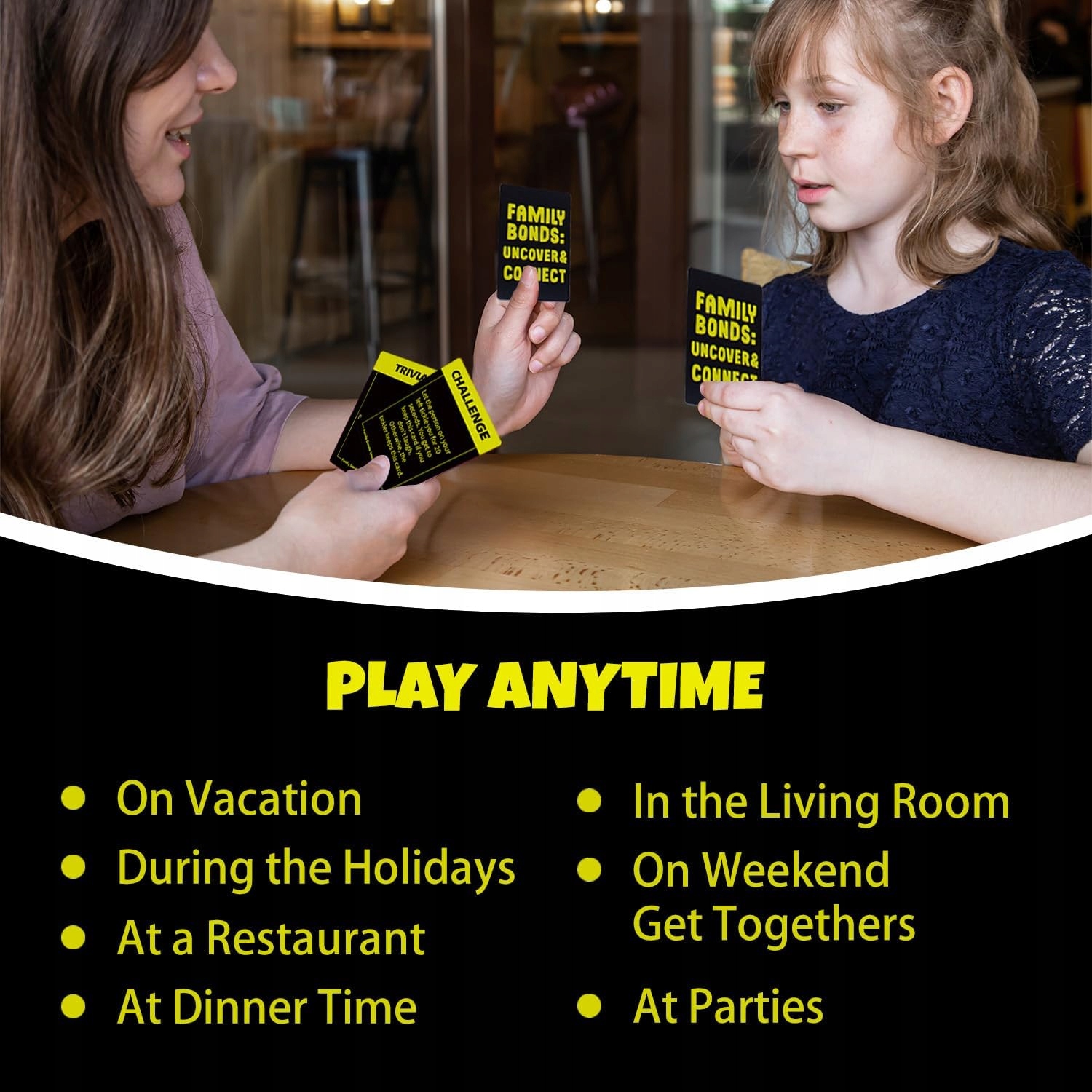 - Приготовьтесь к лучшему вечеру семейных игр, смеясь и узнавая друг друга с помощью этой веселой карточной игры. Весь контент тщательно разработан, в него очень легко учиться и играть — идеальная игра для семей с детьми от 8 лет и старше, подростков и взрослых.