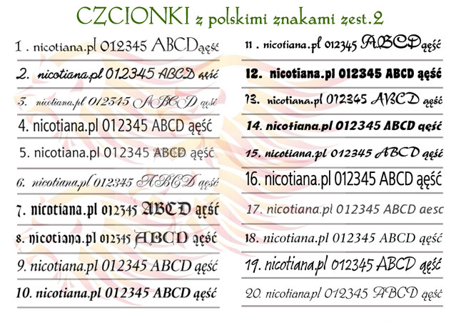 Ниже приведены некоторые основные шрифты с польскими буквами, но мы также можем выгравировать надпись любым другим присланным или указанным шрифтом.