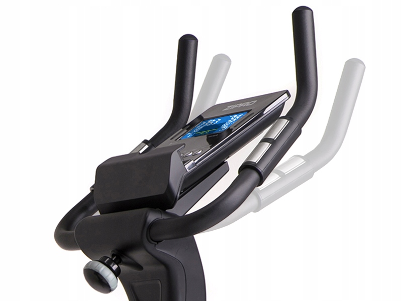 Экран информирует об активной программе и представляет тренировочные ценности. Он сообщает, среди прочего: о времени тренировки, пройденном расстоянии, скорости, оборотах в минуту и количестве сожженных калорий. Компьютер также фиксирует пульс с помощью сенсорных датчиков, размещенных на рукоятках руля.