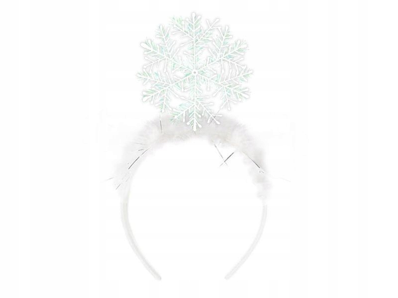 Красивый ободок с блестящими снежинками, дополнительно украшенный белым пухом.