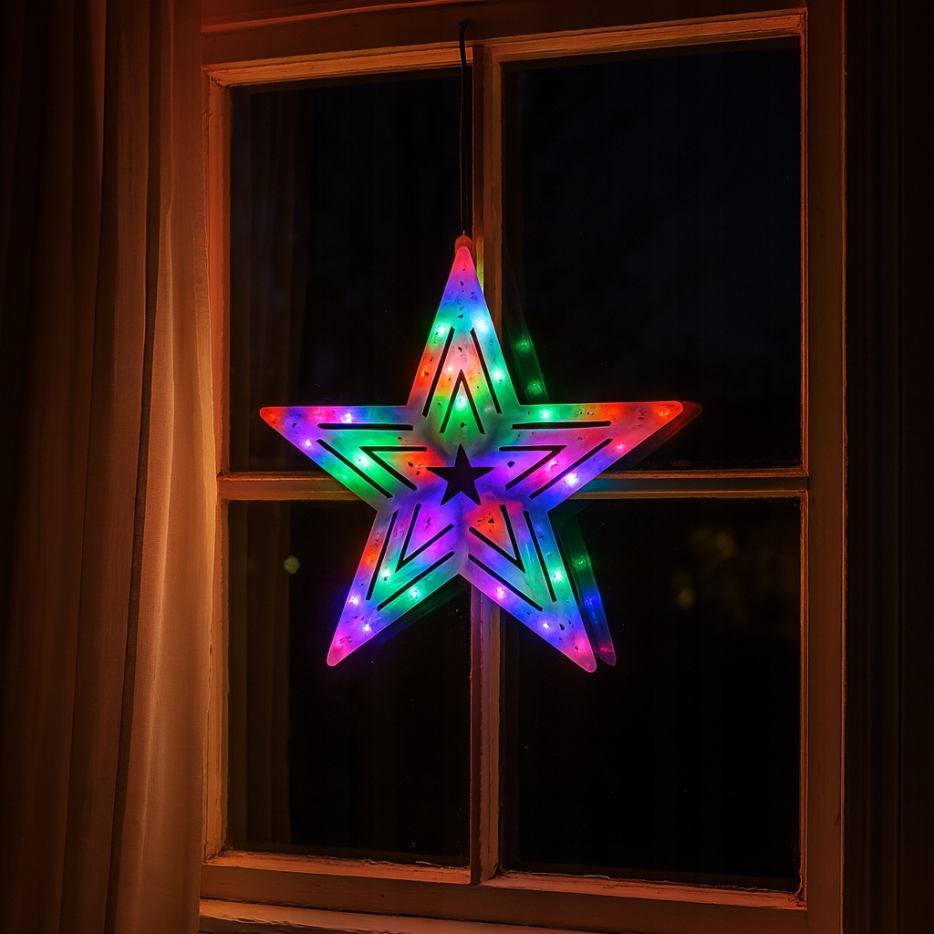 ⭐⭐ЗВЕЗДНОЕ РОЖДЕСТВЕНСКОЕ УКРАШЕНИЕ ОКНА МНОГОЦВЕТНОЕ СВЕТОДИОДНОЕ 55Х40СМ ⭐