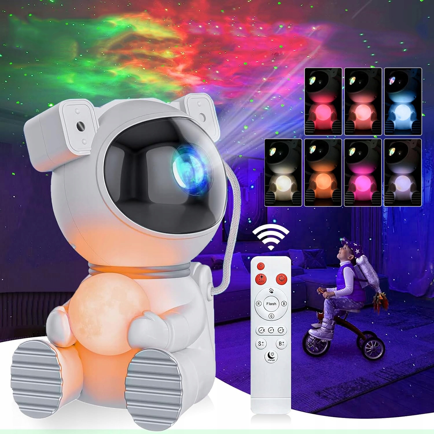Вы можете управлять этим легким проектором астронавтов, используя кнопки на задней части корпуса и дистанционного управления. Прикроватная лампа доступна в разных цветах, так что вы можете выбрать свой любимый цвет, который будет сопровождать вас в стране мечты.