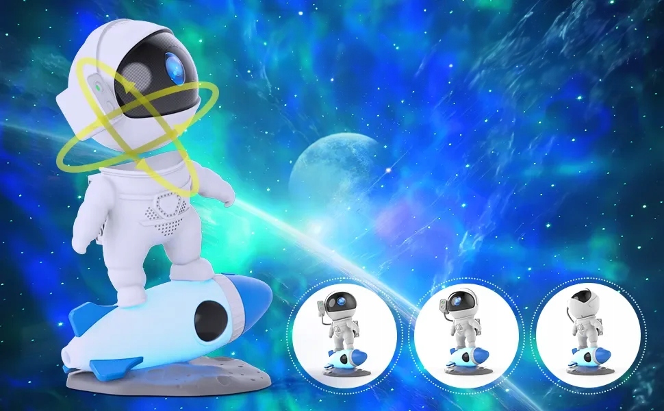 ✳️ ПРОЕКТОР ASTRONAUT LED_RGB ROCKET ASTRONAUT ✳️ МАКС. МОЩНОСТЬ 5 Вт ✳️ РАЗНОЦВЕТНОСТЬ ✳️ 5 УРОВНЕЙ СКОРОСТИ ✳️ ТАЙМЕР ✳️ РЕГУЛИРОВКА ЯРКОСТИ ЗВЕЗД/ТУМАННОСТИ ✳️ ВРАЩАЮЩАЯСЯ ТУМАННОСТЬ ✳️ ЗВЕЗДЫ ✳️ 8 ЭФФЕКТОВ ТУМАННОСТИ ✳️ РЕГУЛИРОВКА МАГНИТНОЙ ГОЛОВЫ КОСМОНАВТА ✳️ 17 СТИЛЕЙ СВЕТА ✳️ ВСТРОЕННЫЙ ДИНАМИК ✳️ BLUETOOTH ✳️ МОБИЛЬНОЕ ПРИЛОЖЕНИЕ ДЛЯ ДИСТАНЦИОННОГО УПРАВЛЕНИЯ ✳️