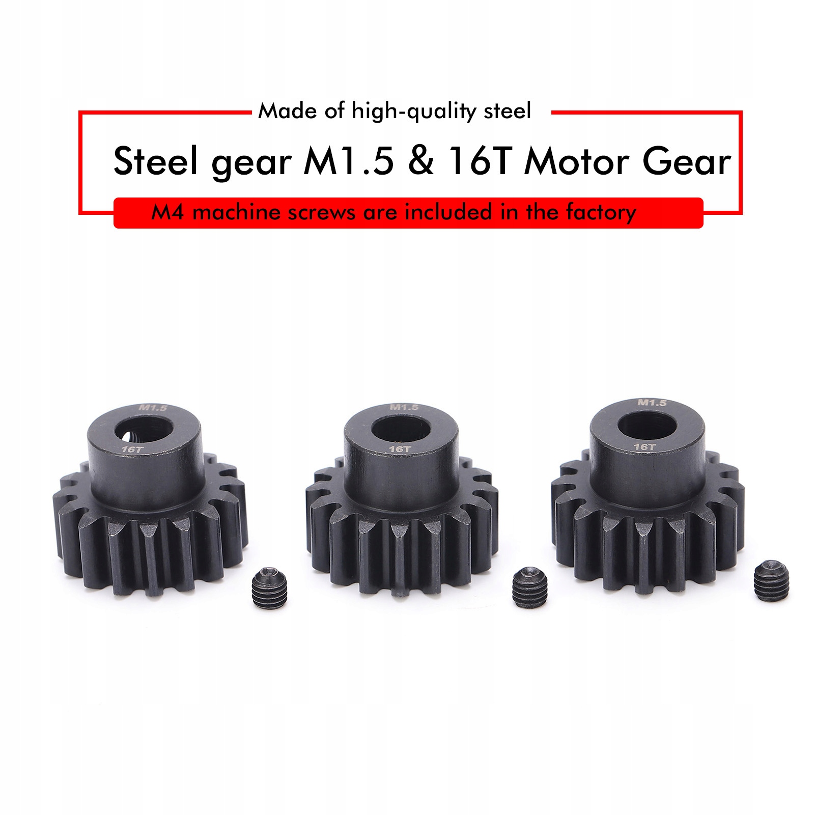 Звездочка двигателя M1.5, 3 шт., 16T, 8 мм, стальной вал, шестерня для бесщеточного двигателя радиоуправляемого автомобиля 1/6 1/5