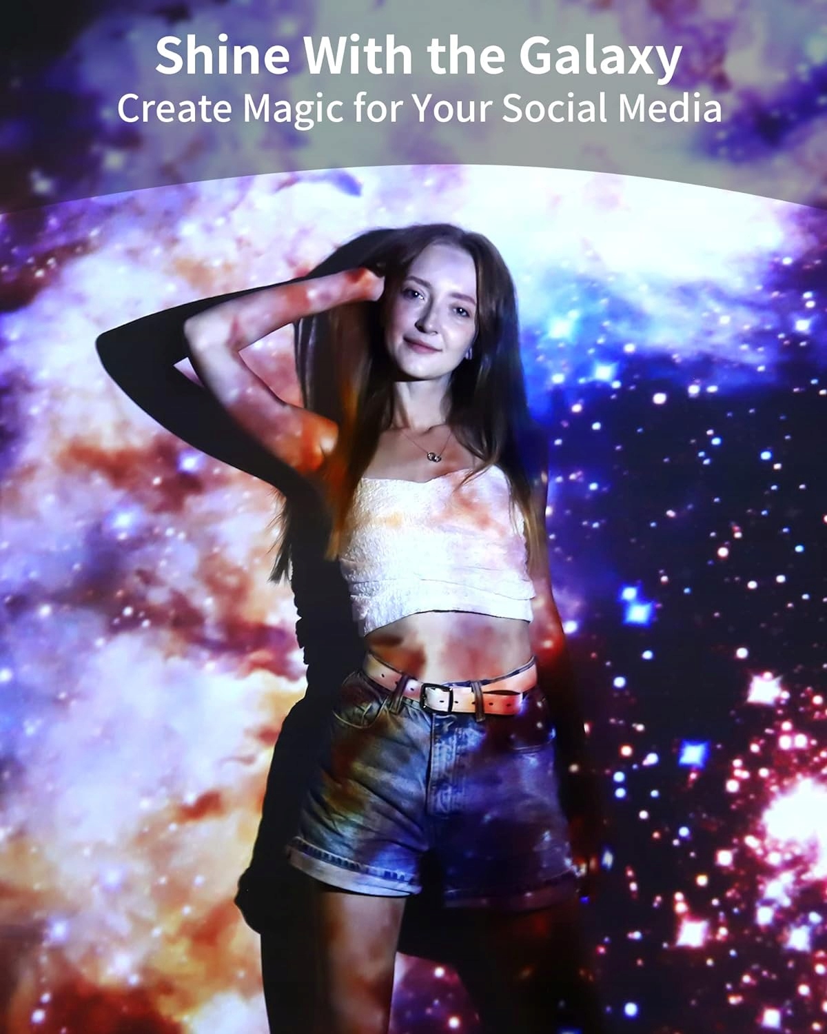 - Захватывающее звездное небо: благодаря высокоточному носителю контента, сверхширокоугольному объективу и передовой дисковой технологии создается захватывающая сцена звездного неба, похожая на планетарий. Превратите свои комнаты в райские просторы для очаровательных путешествий.