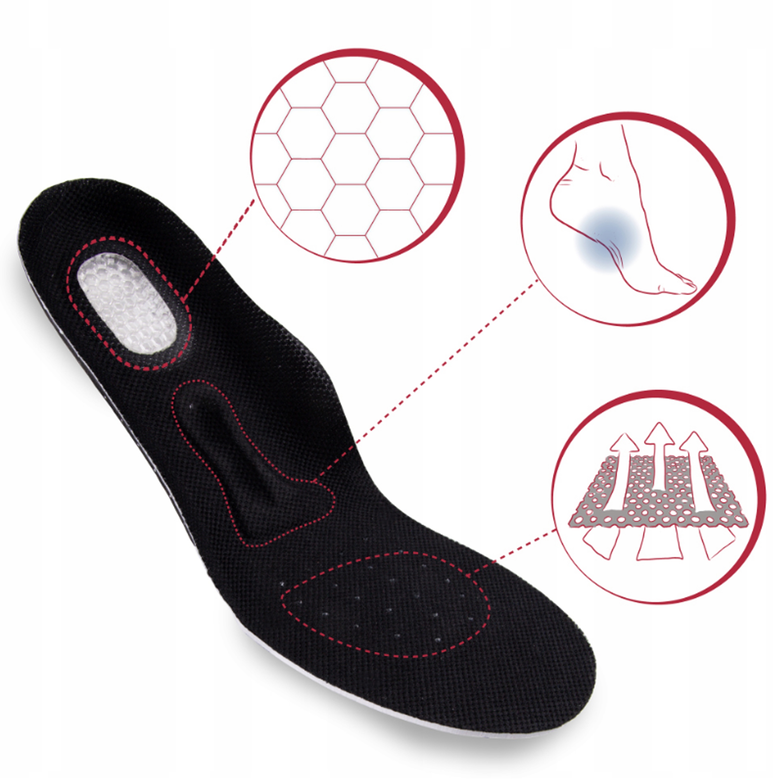 ➡ гелевой пролет- он поглощает вибрации, образованные во время ходьбы или бега. Гель, используемый в гелевой подушке, имеет сотовую структуру, которая увеличивает его эластичность, одновременно увеличивая функциональные свойства. усталость.