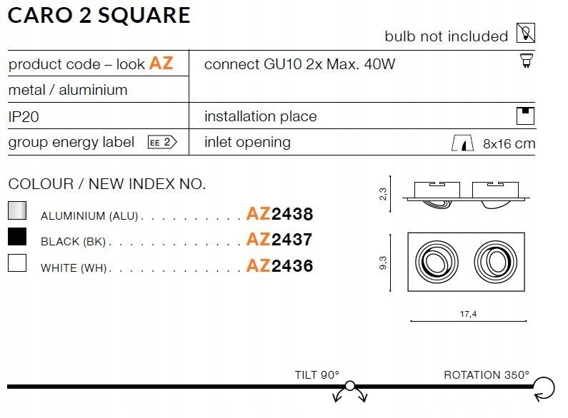 Встраиваемый светильник CARO 2S белый AZ2436 - Azzardo